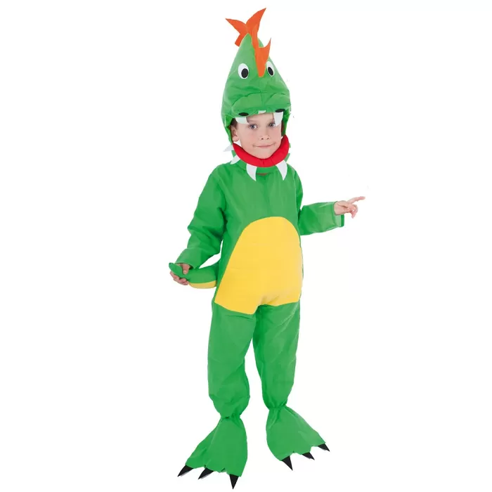 Detský kostým roztomilého dinosaura sa skladá z dvoch častí - overal s chvostom a nasadzovacia hlava s otváracou pusou. Ideálne na karnevaly alebo len tak na zábavu.