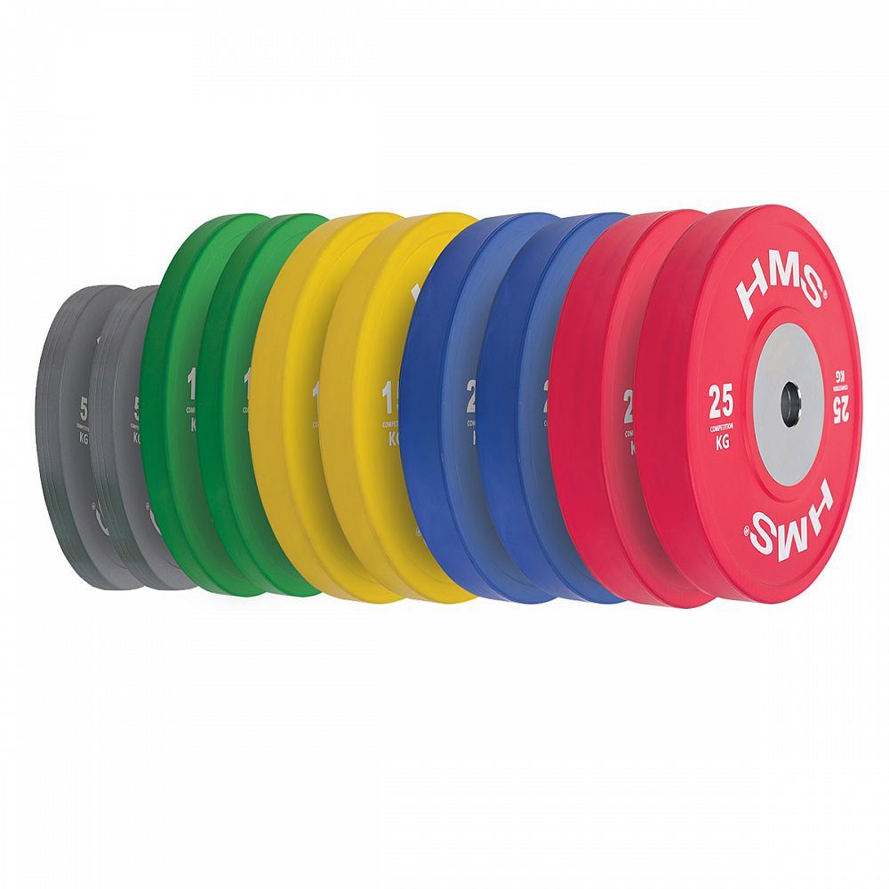 Set oympíjskych kotúčov HMS vhodný pre závody vo vzpieračstve a pri funkčnom tréningu. Tento set je sfarbený presne podľa závodných noriem. Jeho hlavným parametrom je odolnosť, kedy aj po odhode z veľkej výšky, zostane kotúč aj podložie bez známky poškodenia. Kotúč je určený pre olympijské osi s priemerom tŕňov 50 mm.