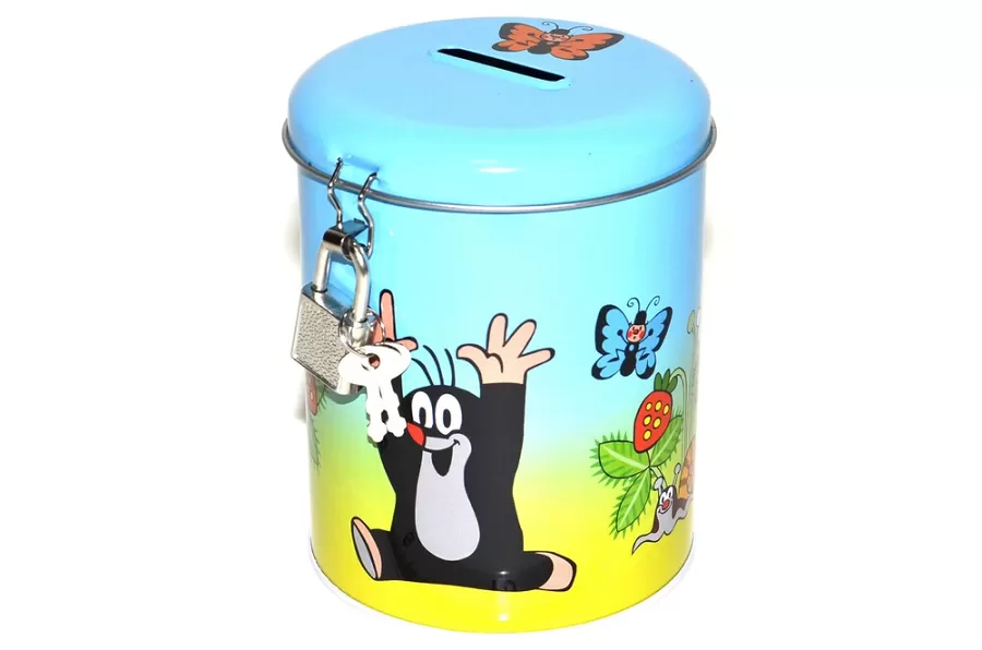 Pokladnička s motívom Krtka s kamarátmi. Ideálne pre malé šetrílky.