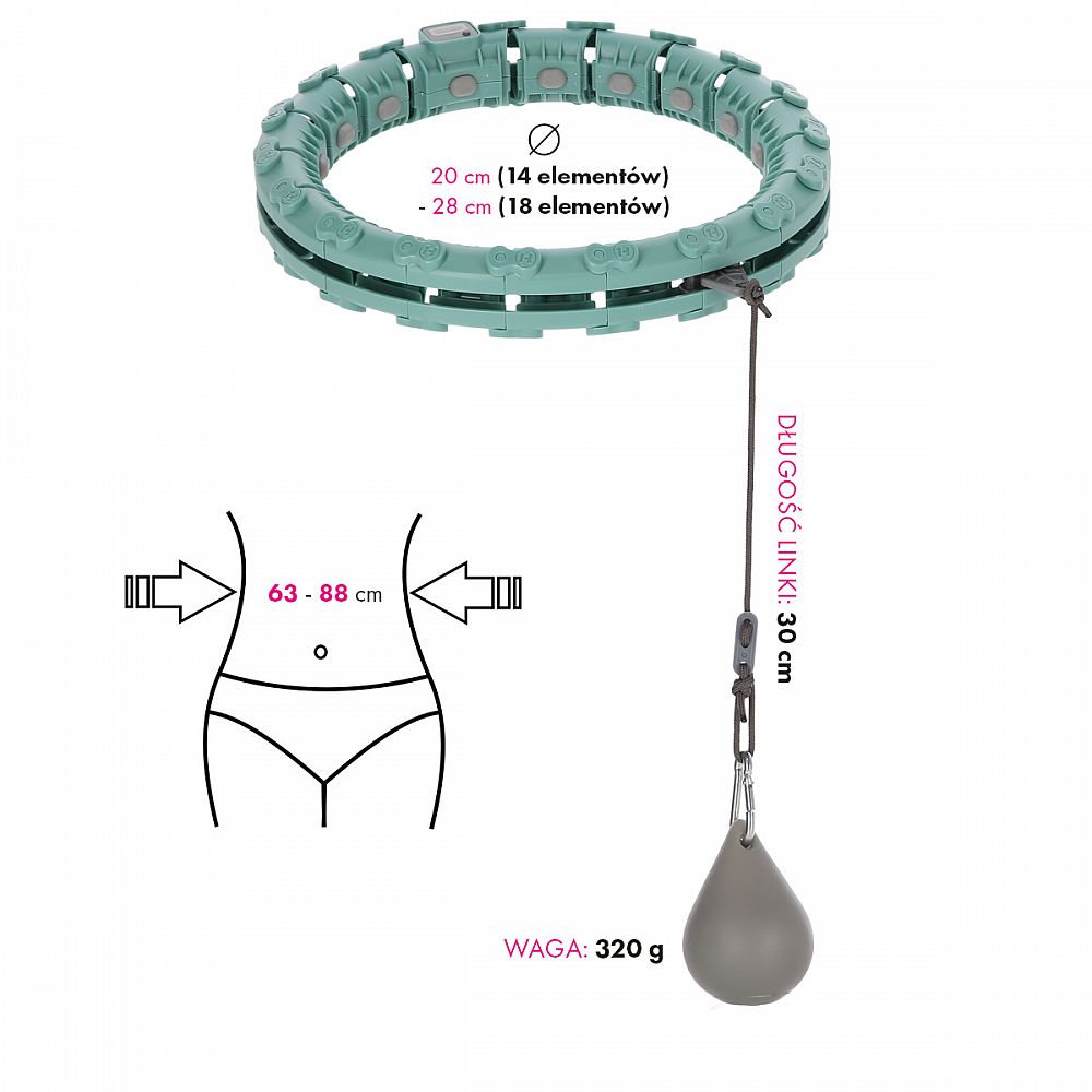 Popis: Masážna hula hoop FH03 so závažím a počítadlom zelená