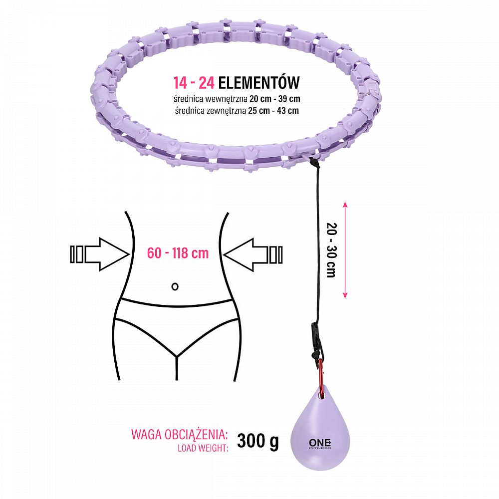 Popis: Masážna hula hoop ONE Fitness OHA02 so závažím fialová