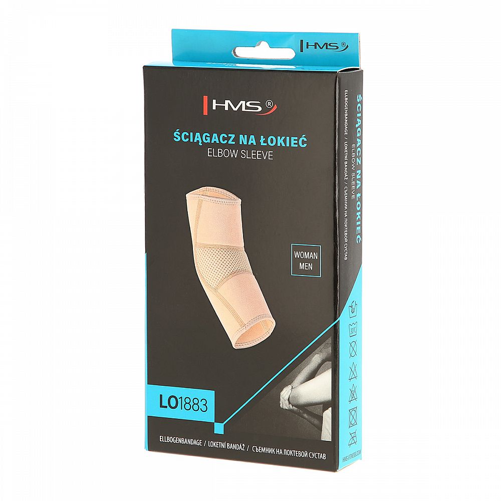 HMS LO1883 je bandáž pre spevnenie lakťa, bez obmedzenia pohybu. Materiál je kombináciou neoprénu a polyesteru, vďaka tomu je pružný a dokonale priľne k pokožke. Sťahovadlo LO1883 nájde uplatnenie ako prevencia zranenia, zároveň napomáha udržať lakeť v teple a podporuje prúdenie krvi, to urýchľuje rekonvalescenciu, znižuje bolestivosť a predchádza kŕčom a drevenenia paže.
