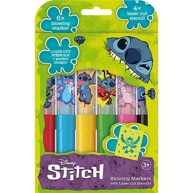 Foukací fixy v pestrých barvách v motivu známe pohádky Lilo & Stitch se šablonami hlavních hrdinů. Ideální na tématickou oslavu jako zábava pro děti nebo jako dárek pro oslavence k narozeninám, Vánocům nebo jenom tak pro radost.Balení: 6 foukacích fixů, 4 šablony