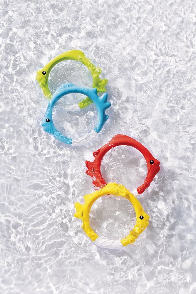 Krúžky pre potápanie Intex sa po vhodení do bazénika "postaví" na jeho dno. Ponorte sa do letných radovánok s farebnými krúžkami Intex a ukážte koľko ich dokážete vyloviť.