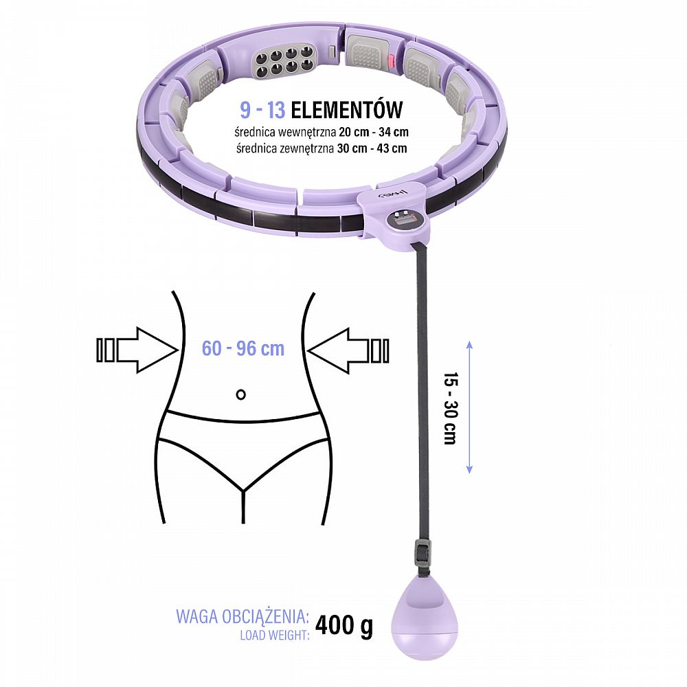 Popis: Súprava masážna hula hoop HMS HHM13 so závažím, magnetmi a počítadlom a zoštíhľujúceho pásu BR163 fialová