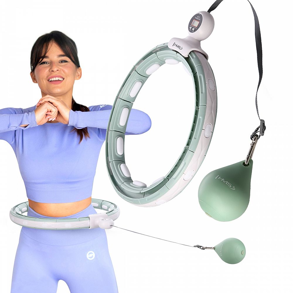 HMS HHM15 je hula hoop obruč s nastaviteľným obvodom, masážnymi magnetickými výstupkami, rotujúcim závažím a počítadlom.