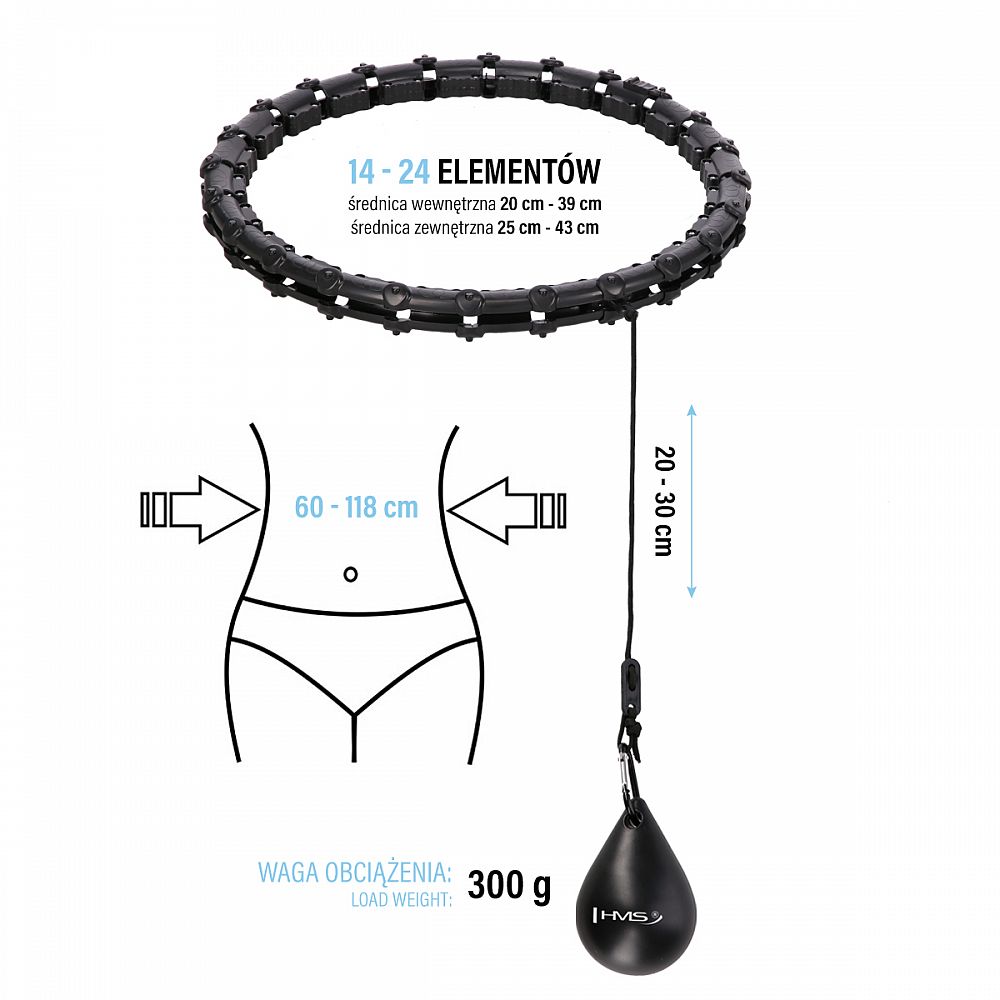 Popis: Súprava masážna hula hoop HMS HHW02 so závažím a zoštíhľujúcim pásom BR163 čierna