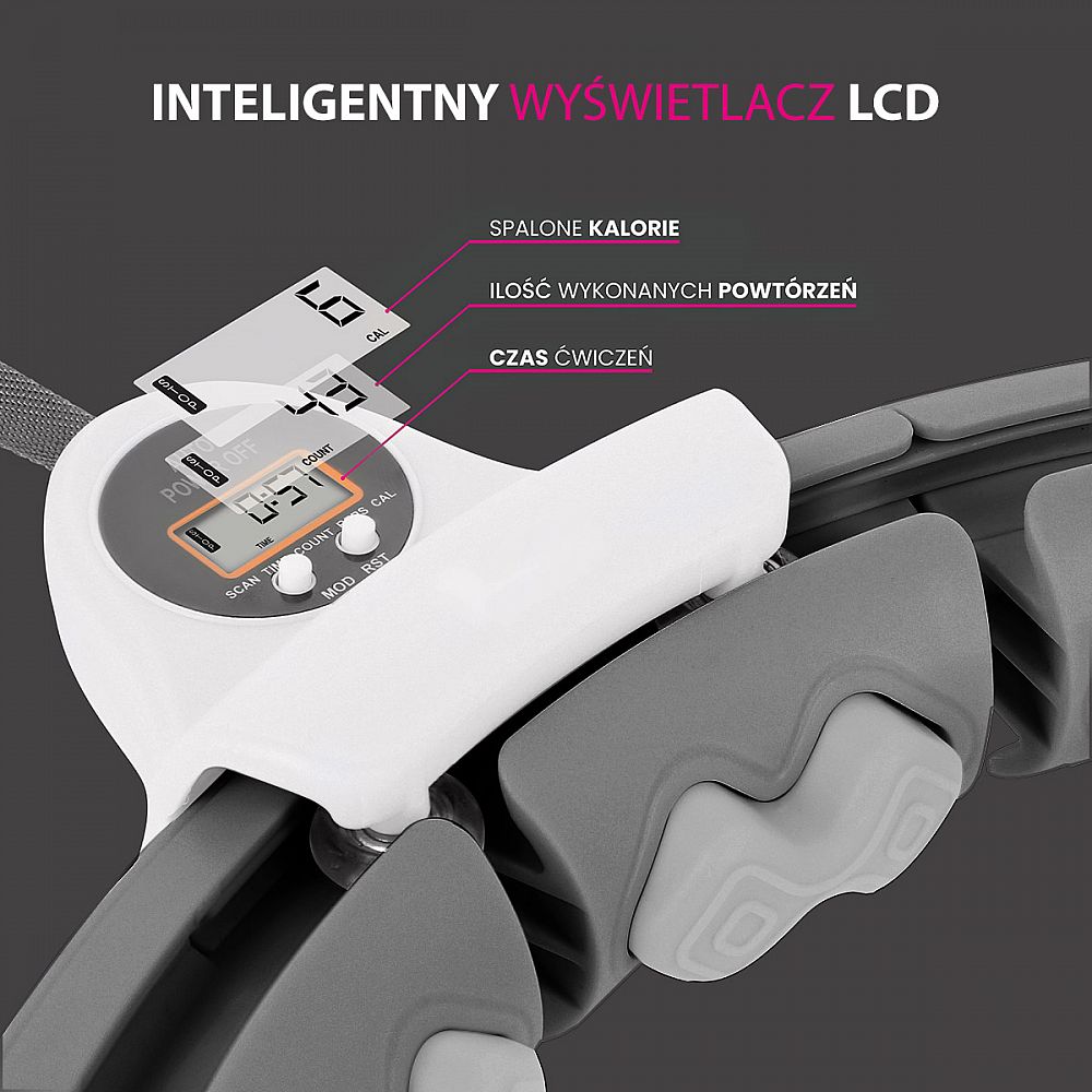HMS HHW06 je hula hop obruč s nastaviteľnou dĺžkou, masážnymi výstupkami, počítadlom a rotujúcim závažím.