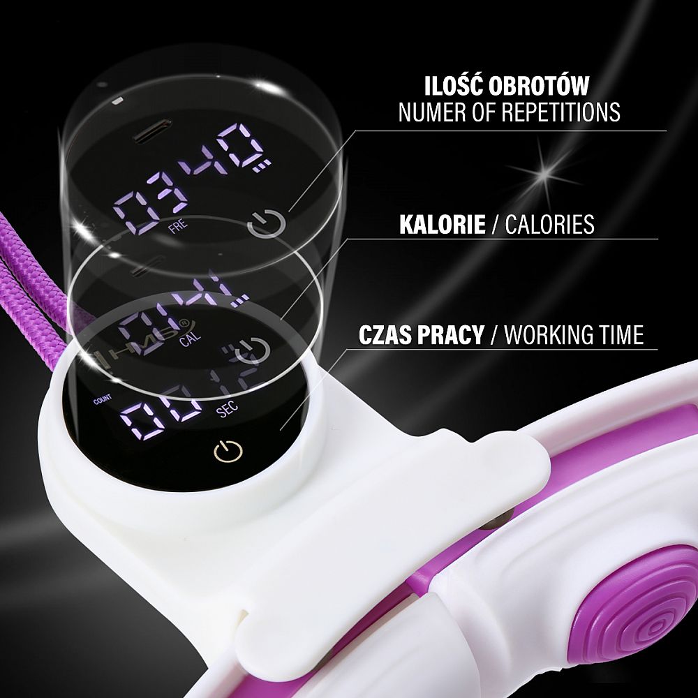 Model HHM17 je vybavený pokročilým digitálnym displejom, ktorý používateľom umožňuje neustále sledovať svoje úspechy počas tréningu. Tento displej poskytuje dôležité informácie, ako je dĺžka cvičenia, spálené kalórie a počet otáčok, čo vám umožňuje presne sledovať váš pokrok a efektivitu každého tréningu. Ďalšou dôležitou vlastnosťou je nabíjanie cez obľúbený USB-C kábel, ktorý je súčasťou sady, čo výrazne uľahčuje používanie a zvyšuje mobilitu zariadenia.