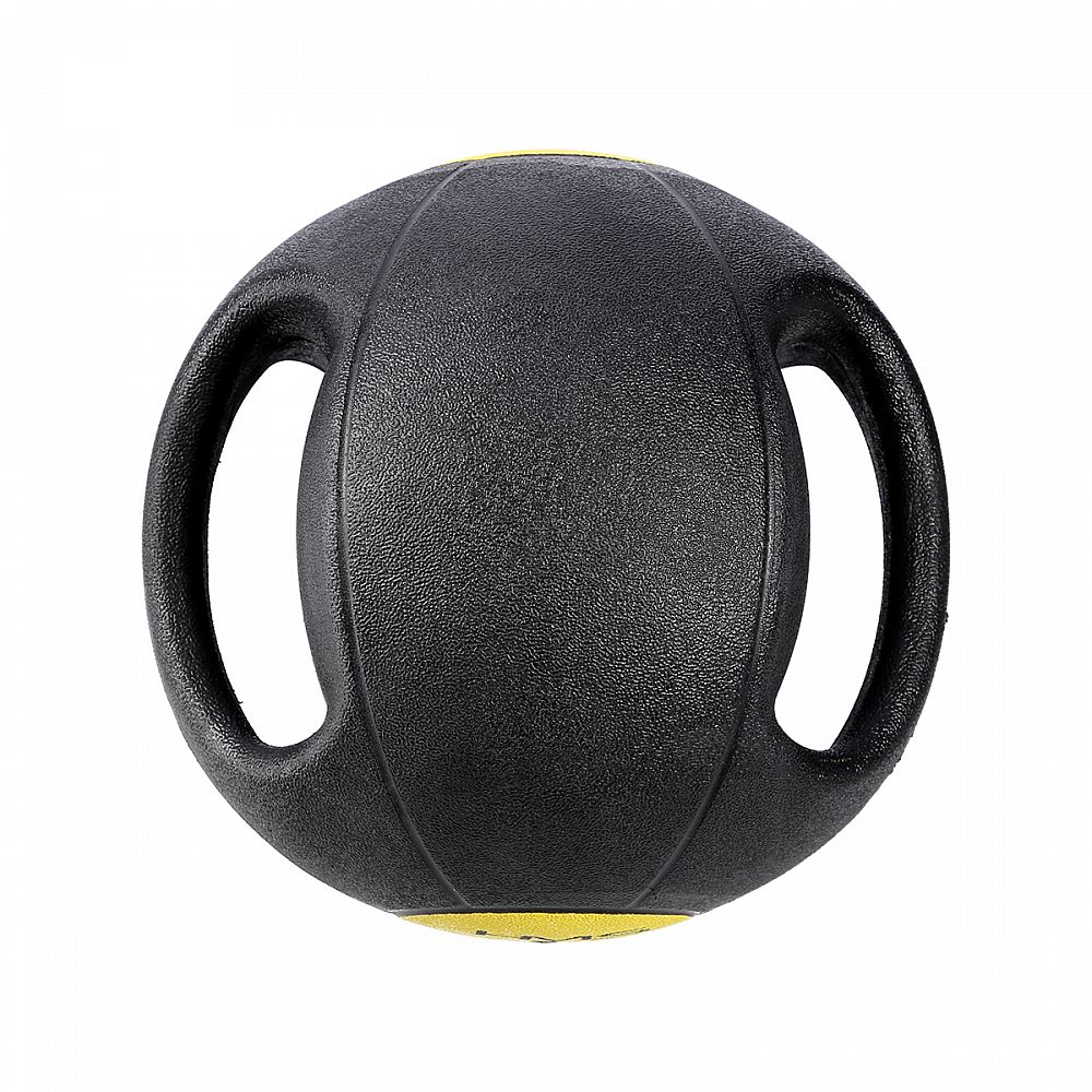 Medicinbal HMS NKU03 je vyrobený z hrubej a pevnej gumy vyplnené pieskom. Vďaka úchytom ide o kombináciu Medicimbal a činky.