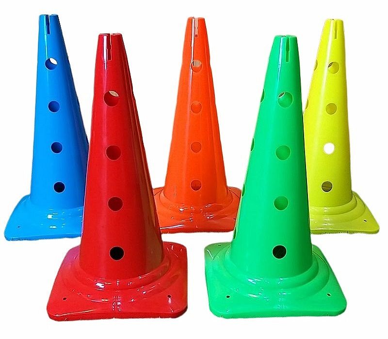 Kvalitný pevný športový dierovaný vytyčovací plastový kužeľ vo viacerých farebných prevedeniach. Používa sa ako pomôcka na vyznačenie dráhy, hracej plochy, na vymedzenie priestoru, bránky a pod. Záleží iba na Vás akú si vytvoríte zostavu pre koordinačné cvičenia, pre rôzne didaktické hry alebo slalomovú dráhu pre Agility.