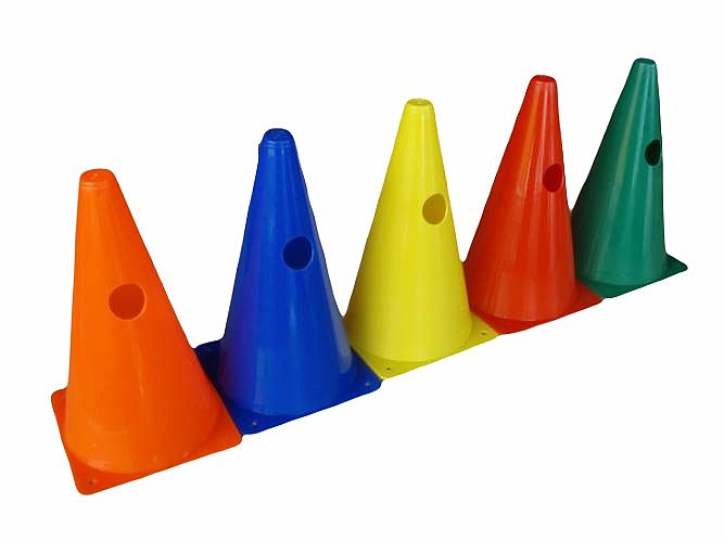 Športový dierovaný vymedzovací plastový kužeľ vo viacerých farebných prevedeniach na označenie terénu počas hier alebo pri športových tréningoch. Kužeľ s otvormi je vhodný ako tréningová pomôcka do škôl, škôlok, oddielov alebo športových klubov na zlepšenie kondície a techniky hráčov.