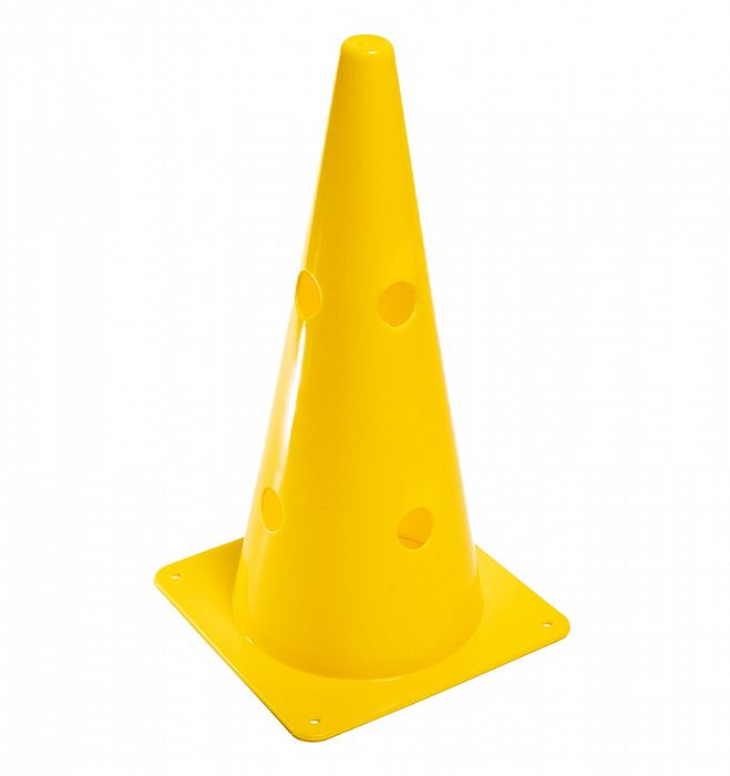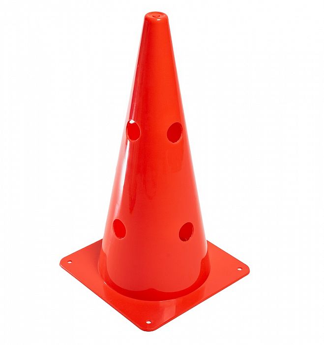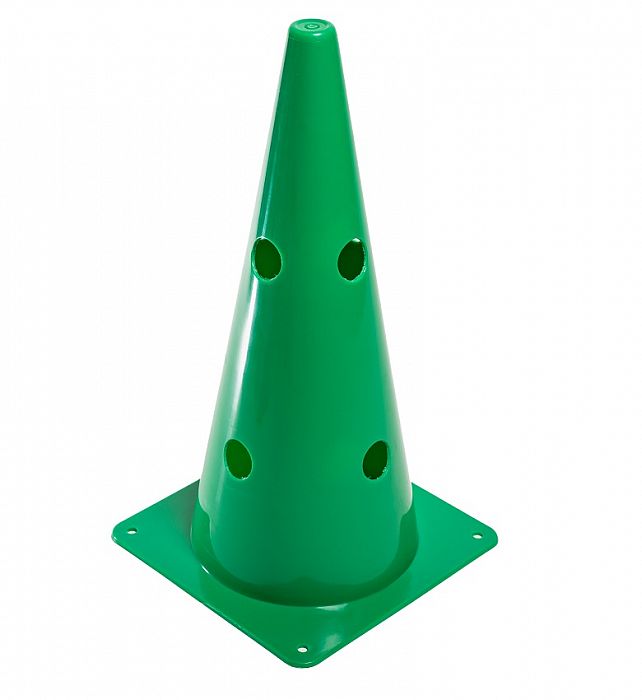 Športový dierovaný vymedzovací plastový kužeľ vo viacerých farebných prevedeniach na označenie terénu počas hier alebo pri športových tréningoch. Kužeľ s otvormi je vhodný ako tréningová pomôcka do škôl, škôlok, oddielov alebo športových klubov na zlepšenie kondície a techniky hráčov.