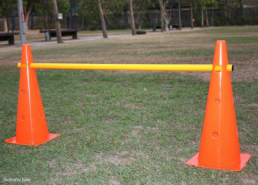 Na rozdiel od klasického kužeľa má tento kužeľ otvory na zasunutie tyče čo umožňuje vytvorenie prekážkovej dráhy.