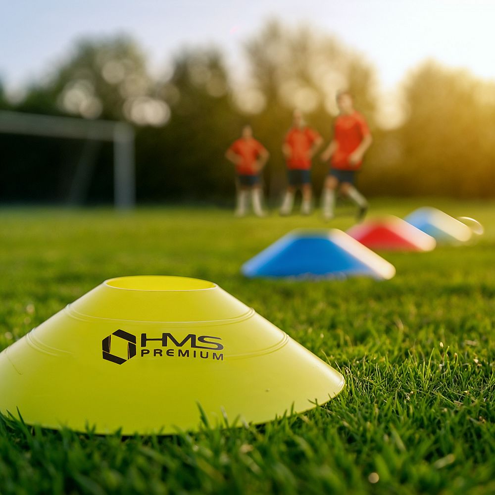 Vytyčovacie méty HMS o 50 ks v balení, slúži na vytýčenie dráh, ohraničenie priestoru alebo aj ďalších funkčných prvkoch vo všetkých športoch. Méty sú vyrobené z mäkčeného plastu, odolného proti prešliapnutia.