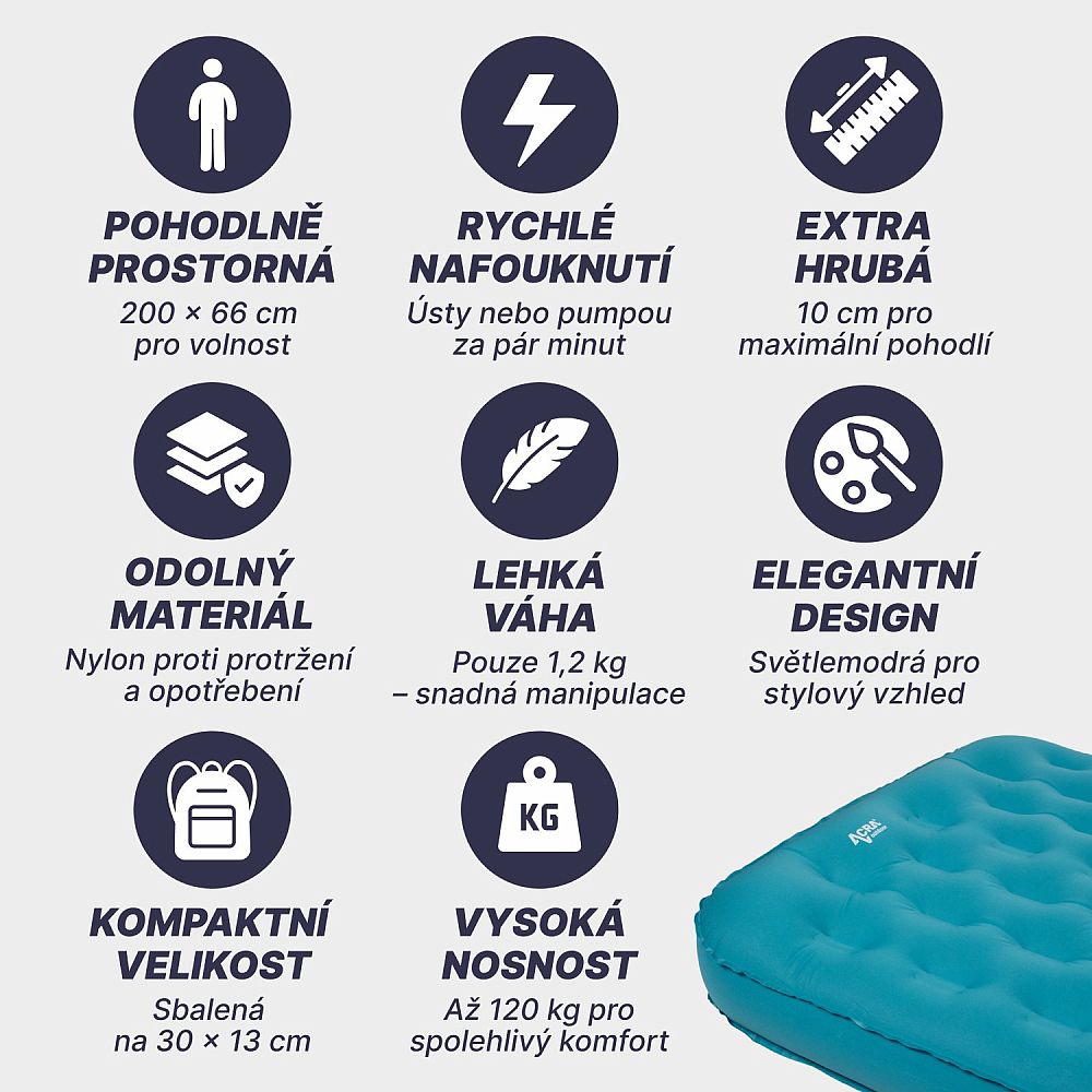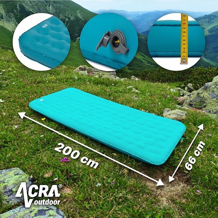 Popis: ACRA L140MO Komfortná nafukovacia karimatka modrá 10cm a dĺžkou 200cm