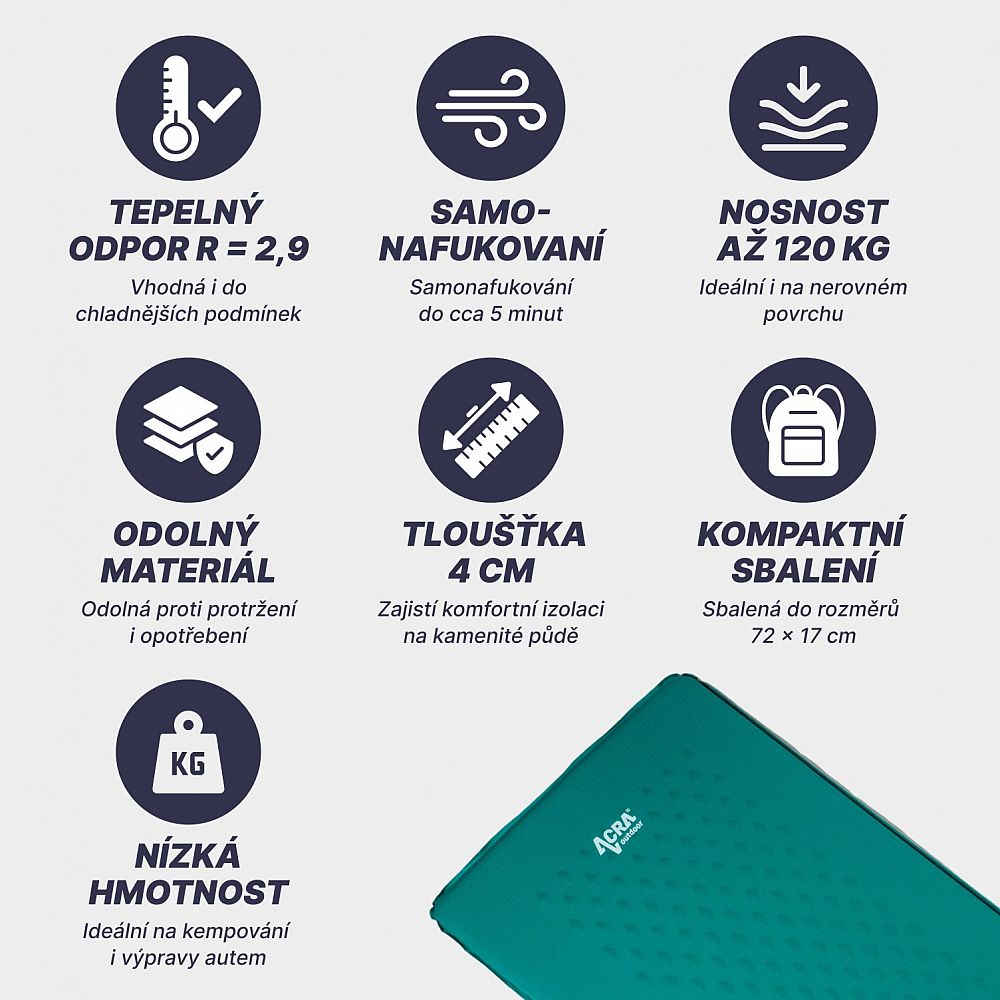 Popis: ACRAL140GRE samonafukovacia komfortná karimatka zelenomodrá 4cm