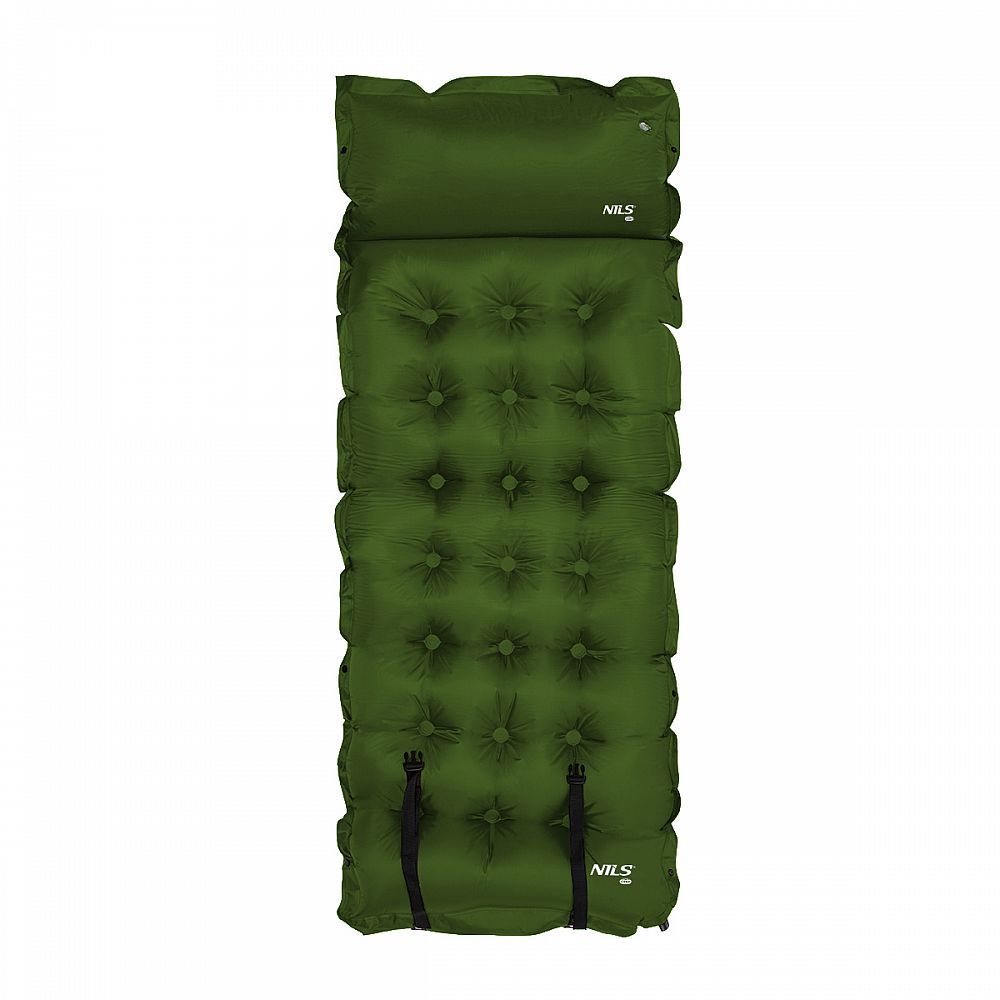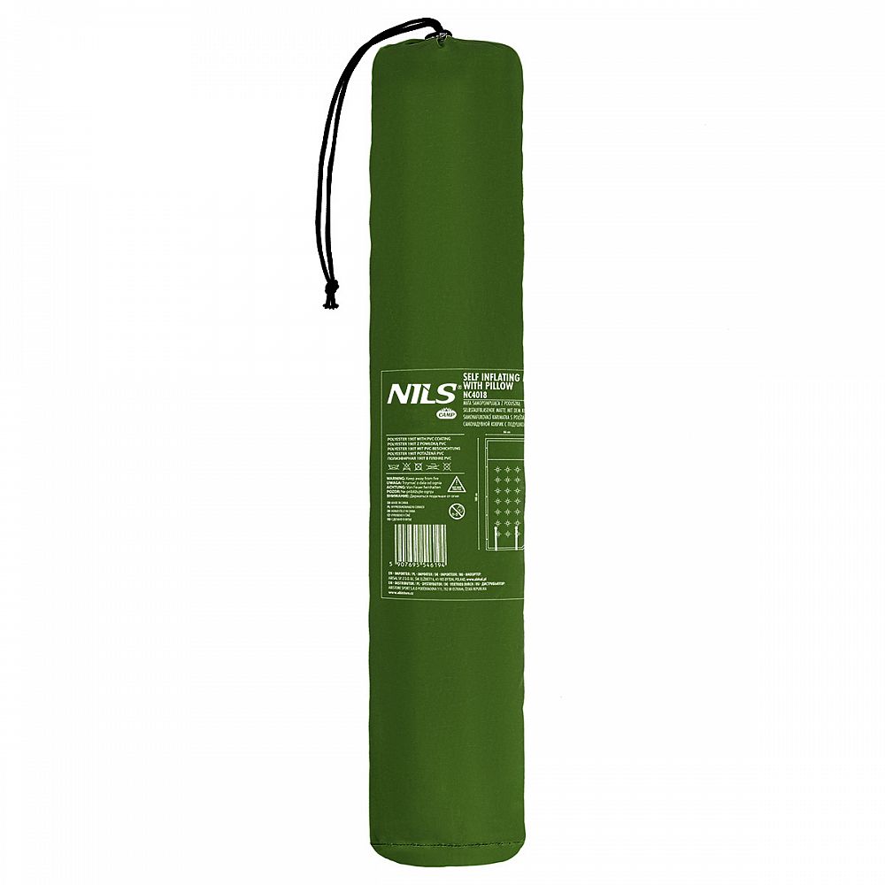Samonafukovacia karimatka NILS CAMP NC4018 zaistí kvalitný spánok počas kempovania a dovoleniek pod stanom. Podložka je ale vhodná aj k vode a všade tam, kde si chcete príjemne poležať. Samonafúknutie zaisťuje vnútorný, penový materiál s otvorenými pórmi. Po povolení ventilu do seba nasáva vzduch a dostáva sa tak do pôvodného stavu. Záverom je ešte potrebné podložku dofúknuť na požadovanú tvrdosť. Skladanie sa vykonáva otvorením ventilu a zrolovaním od opačnej strany, než je ventil. Karimatku potom zaistíme remienkami s prackami a vložíme do dodávaného vaku. Na model NC4018 bol použitý veľmi odolný polyester 190T potiahnutý vrstvou PVC, táto kombinácia zaisťuje vysokú odolnosť a karimatka sa dá položiť aj na nerovný povrch. Lemy karimatky sú opatrené cvočkami, ktoré umožňujú spojiť viac matracov do jednej, veľkej plochy, toto sa hodí napríklad na vyplnenie podlahy v stane. Vankúšik nie je odnímateľný a oproti karimatke nie je vyplnený penou a je potrebné ho celý nafúknuť. Súčasťou balenia je aj opravná sada, ktorá sa hodí v prípade poškodenia.