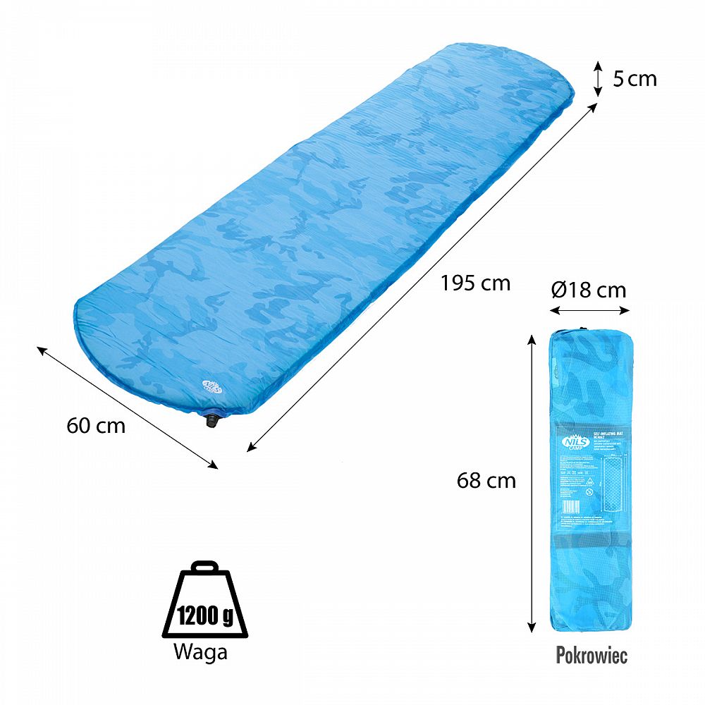 Samonafukovacia karimatka NILS CAMP NC4062 zaistí kvalitný spánok počas kempovania a dovoleniek pod stanom. Podložka je ale vhodná aj k vode a všade tam, kde si chcete príjemne poležať. Samonafúknutie zaisťuje vnútorný, penový materiál s otvorenými pórmi. Po povolení ventilu do seba nasáva vzduch a dostáva sa tak do pôvodného stavu. Záverom je ešte potrebné podložku dofúknuť na požadovanú tvrdosť. Skladanie sa vykonáva otvorením ventilu a zrolovaním od opačnej strany, než je ventil. Karimatku potom zaistíte remienkami a vložíte do dodávaného vaku. Na model NC4062 bol použitý veľmi odolný polyester 190T potiahnutý vrstvou PVC, táto kombinácia zaisťuje vysokú odolnosť a karimatka sa dá položiť aj na nerovný povrch.