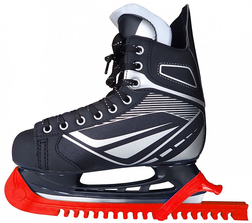 Chrániče bruslí plastové - univerzální velikost, vhodné na hokejové brusle i krasobrusle. Provedení bruslí je v červené barvě.