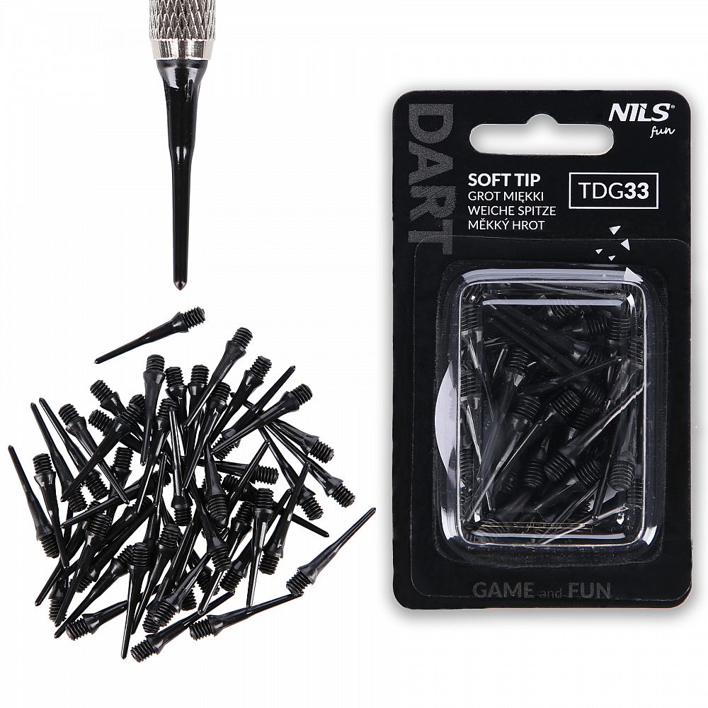 NILS Fun TDG33 sú mäkké, plastové hroty k šípkam so závitom 2BA určené na hranie šípok na elektronickom terči. Sú vyrobené z plastu a sú odolné a robustné.