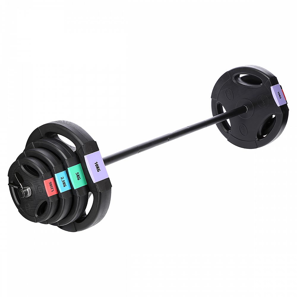 Kotúče sú vyrobené z tvrdého plastu, ktorý je vyplnený cementom. Obojručná osa je tvorená z troch častí, ktoré sa do seba skladajú pomocou šróbenia. Nakladacie tŕne sú hladké a závažie sa zaisťuje pružinovými svorkami.