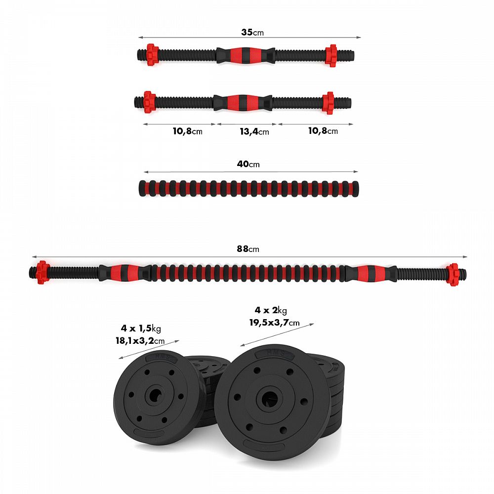 Kompletná nakladacia sada dvoch jednoručných a jednej obojručnej činky s celkovou hmotnosťou 15 kilogramov, to je HMS SGP15. Nakladacie činky patria ku klasickému vybaveniu každej domácej posilňovne.