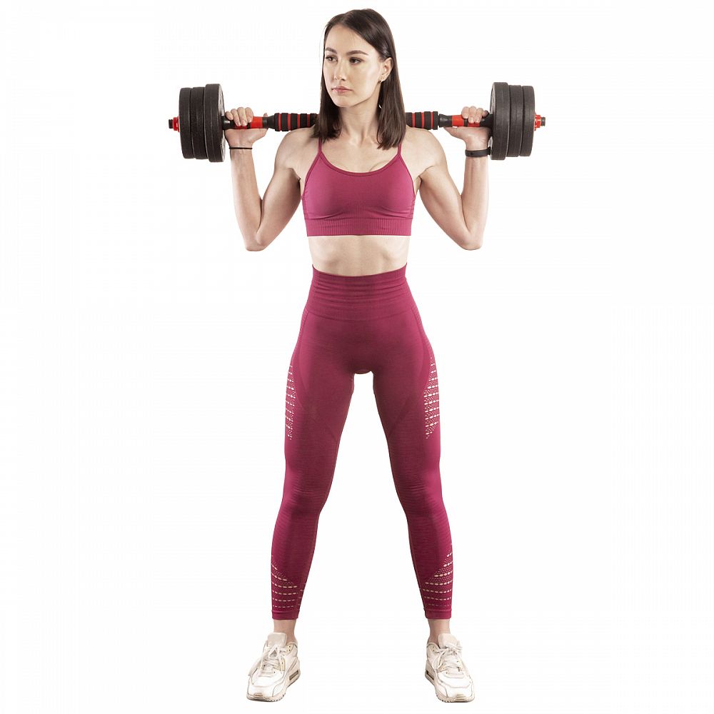 Kotúče sú vyrobené z tvrdého plastu, ktorý je vyplnený cementom. Obojručná os je spojovacím dielom, do ktorého sa vskrutkujú hriadele jednoručných činiek. Nakladacie tŕne sú opatrené závitom a závažie sa zaisťuje pomocou hviezdicových matíc.
