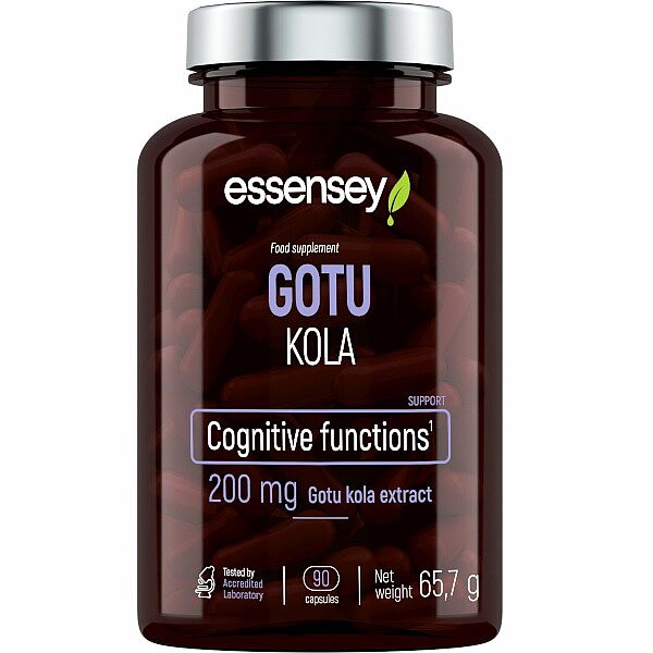 ESSENSEY GOTU KOLESA. Výživový doplnok. Prípravok v kapsuliach obsahujúci extrakt z Pupočníka ázijského (Centella asiatica), obsahuje 200 mg extraktu v každej kapsuli. Centella asiatica pomáha udržiavať dobrú kognitívnu výkonnosť, prispieva k správnemu fungovaniu kardiovaskulárnych funkcií a podporuje trávenie.