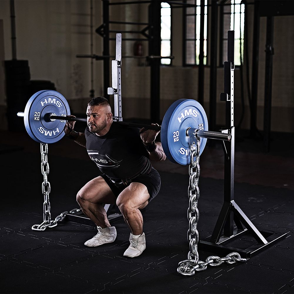 GR50 HMS - to sú dva odolné reťaze slúžiace na zavesenie na hriadeľ. Praktická a pevná montáž k hriadeli je príčinou toho, že sa jedná o univerzálnej pomôcku na použitie v domácej posilňovni. Odporúčame ho všetkým, ktorí chcú plne zrealizovať potenciál, ktorý v sebe tréning s činkami skrýva. Jednotlivé oka každého z reťazí odtrhnutím sa od zeme zvyšujú ťažobu hriadeľa. Hmotnosť hriadele dosahuje maximálnej hmotnosti v najvyššom bode fázy zdvíhanie hriadeľa. Opačný efekt vzniká počas pokladania hriadeľa. Ťarcha hriadele sa teda znižuje priamoúmerne s množstvom reťaze nachádzajúceho sa na zemi. Reťaz GR50 HMS má pozitívny vplyv na fyziologické procesy, ktoré prebiehajú počas cvičenia vo svaloch. Spočíva vo využití javu nazývaného: poaktivační nárast sily sťahu (PAP) - sila svalov rastie, ak po ich vstupnej fáze aktivácia nastúpi maximálny nárast sily sťahu. Využitie reťazí počas tréningu tiež zvyšuje rýchlosť pohybov.