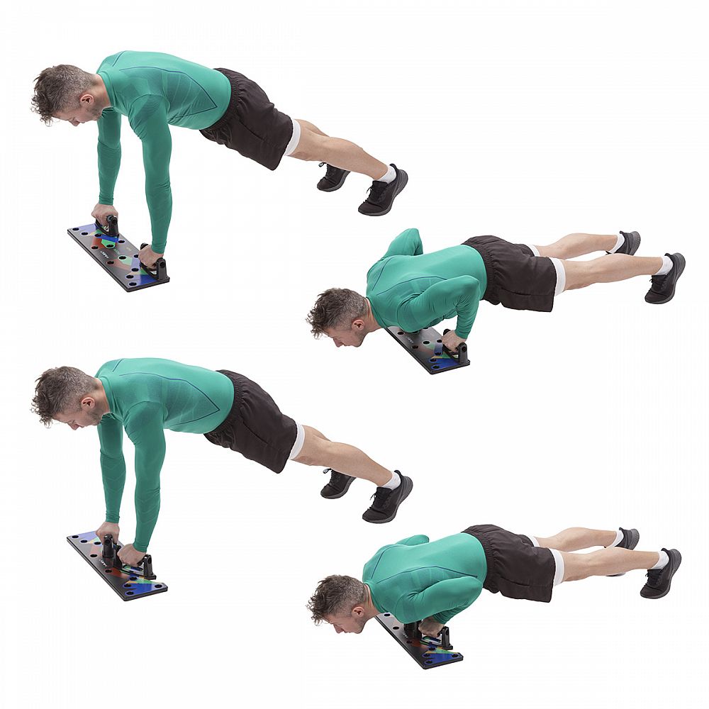 PU10 HMS je multifunkčný, skladacia doska, ktorá umožňuje variabilné tréning klikov. Doska je symetricky rozdelená na 2 polovice, kedy každá časť obsahuje 5 párov otvorov pre umiestnenie dodávaných podpier. Každý pár otvorov umožňuje tréning pod iným uhlom, kedy sa precvičuje iná svalová skupina a to: