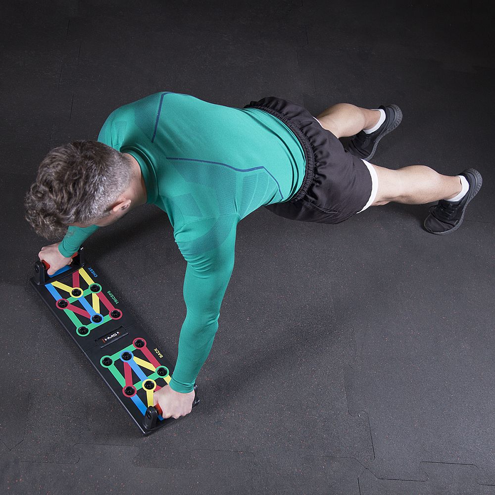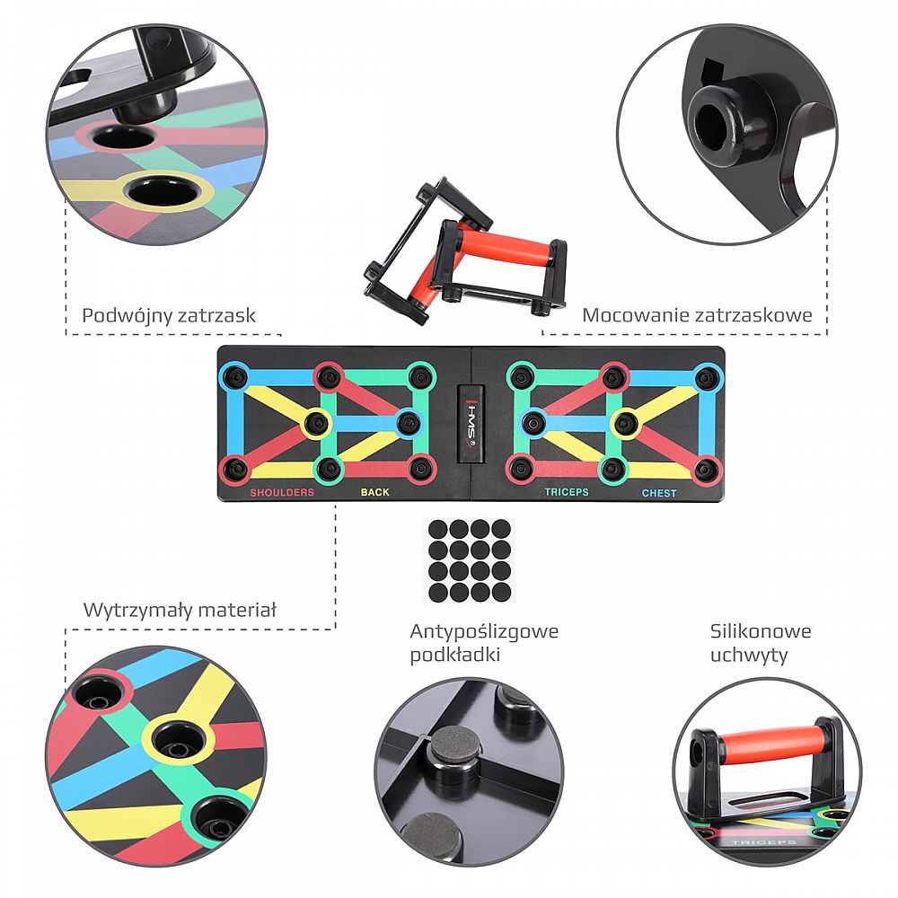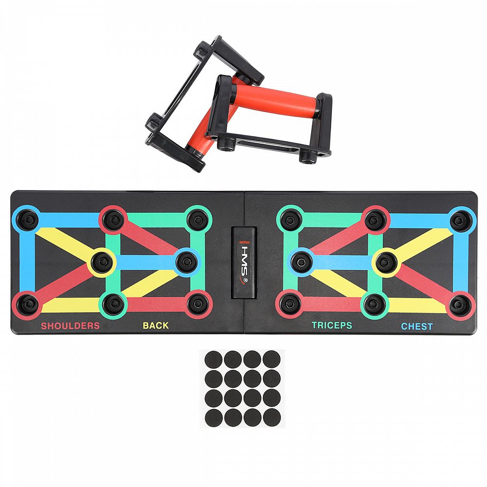 PU12 HMS je multifunkčná, skladacia doska, ktorá umožňuje variabilný tréning klikov. Doska je symetricky rozdelená na 2 polovice. PU12 obsahuje 8 párov otvorov na umiestnenie dodávaných podpier. Každý pár otvorov umožňuje tréning pod iným uhlom, kedy sa precvičuje iná svalová skupina a to: