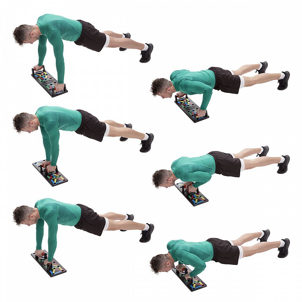 - pri umiestnení podpier do zelených otvorov budete počas klikovania precvičovať tricepsy
