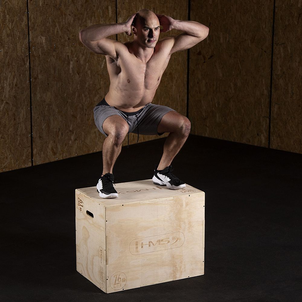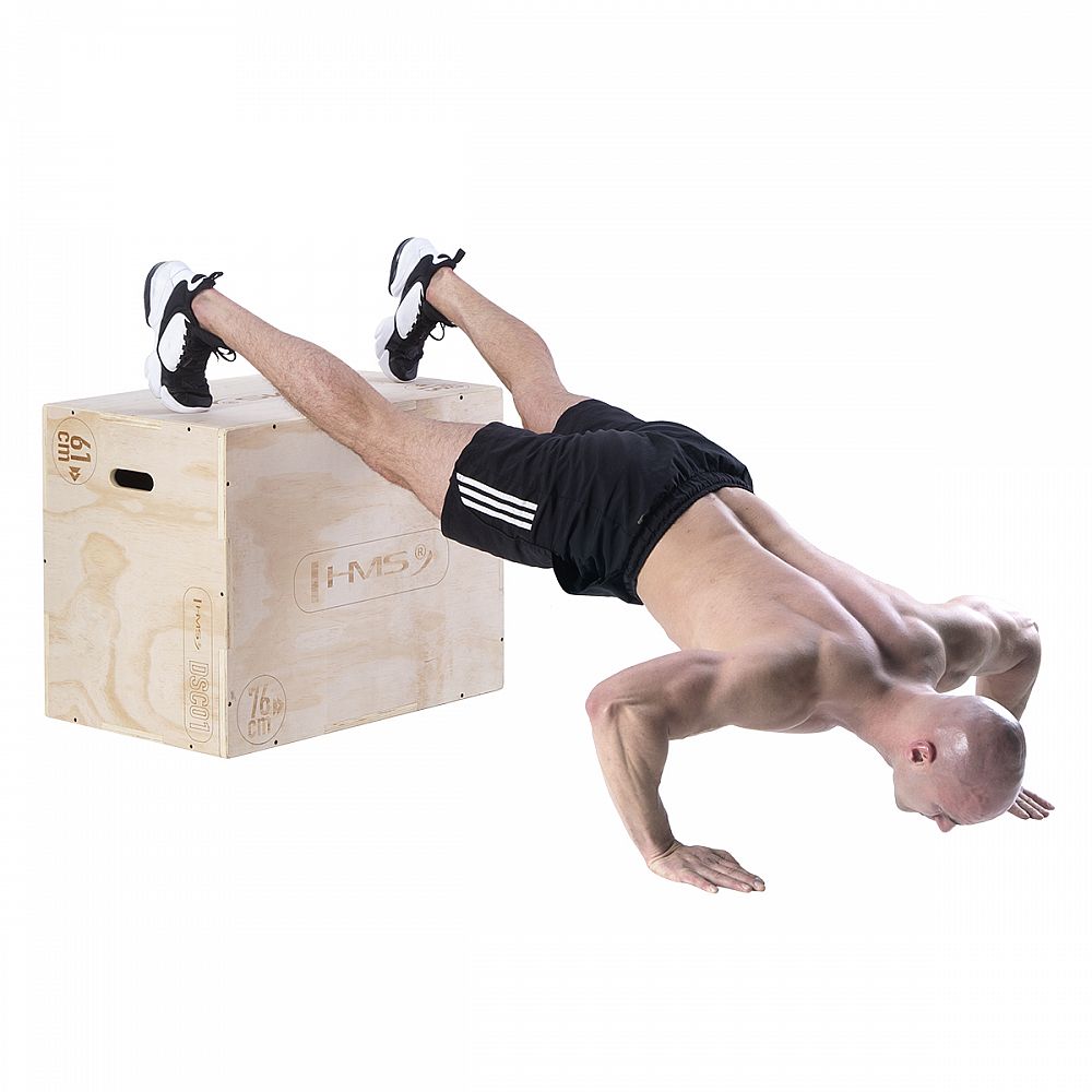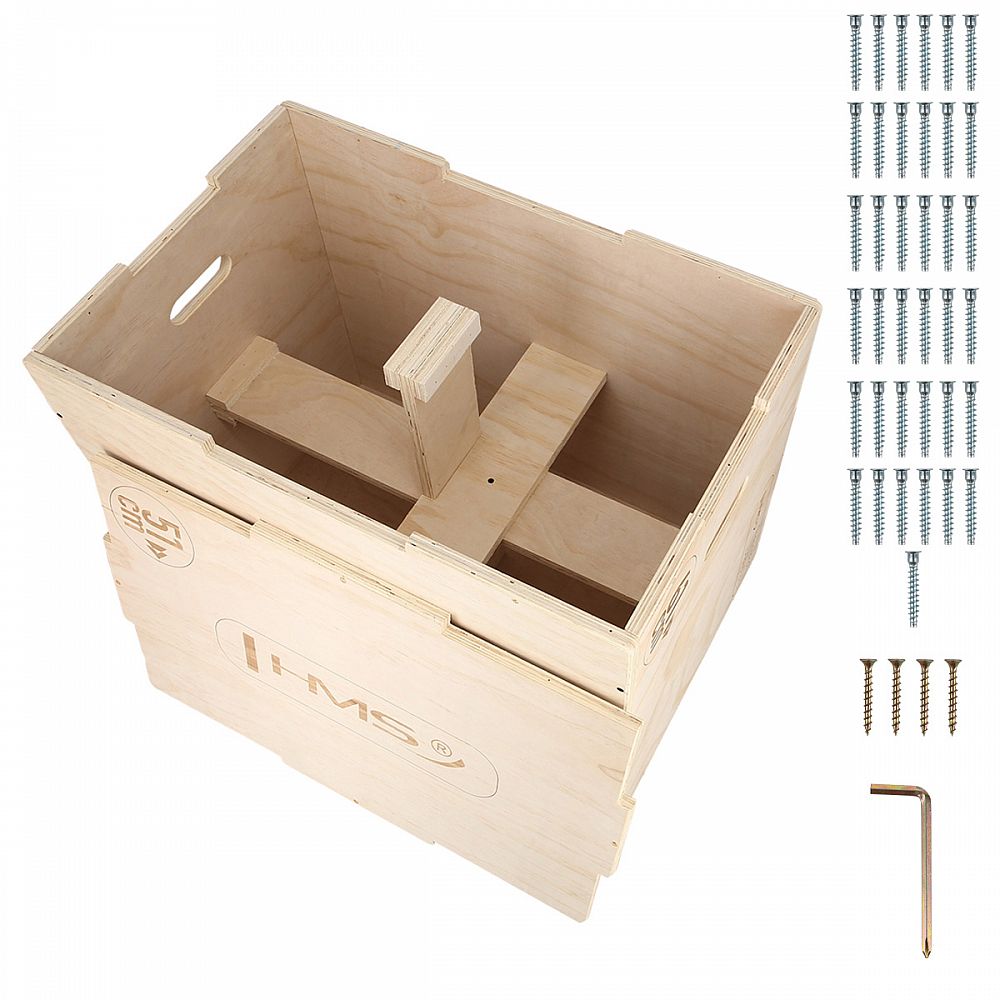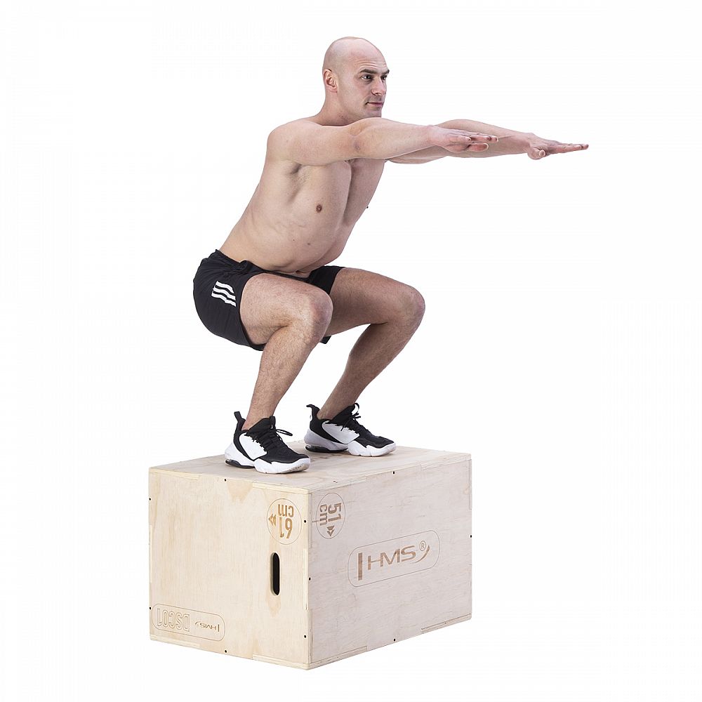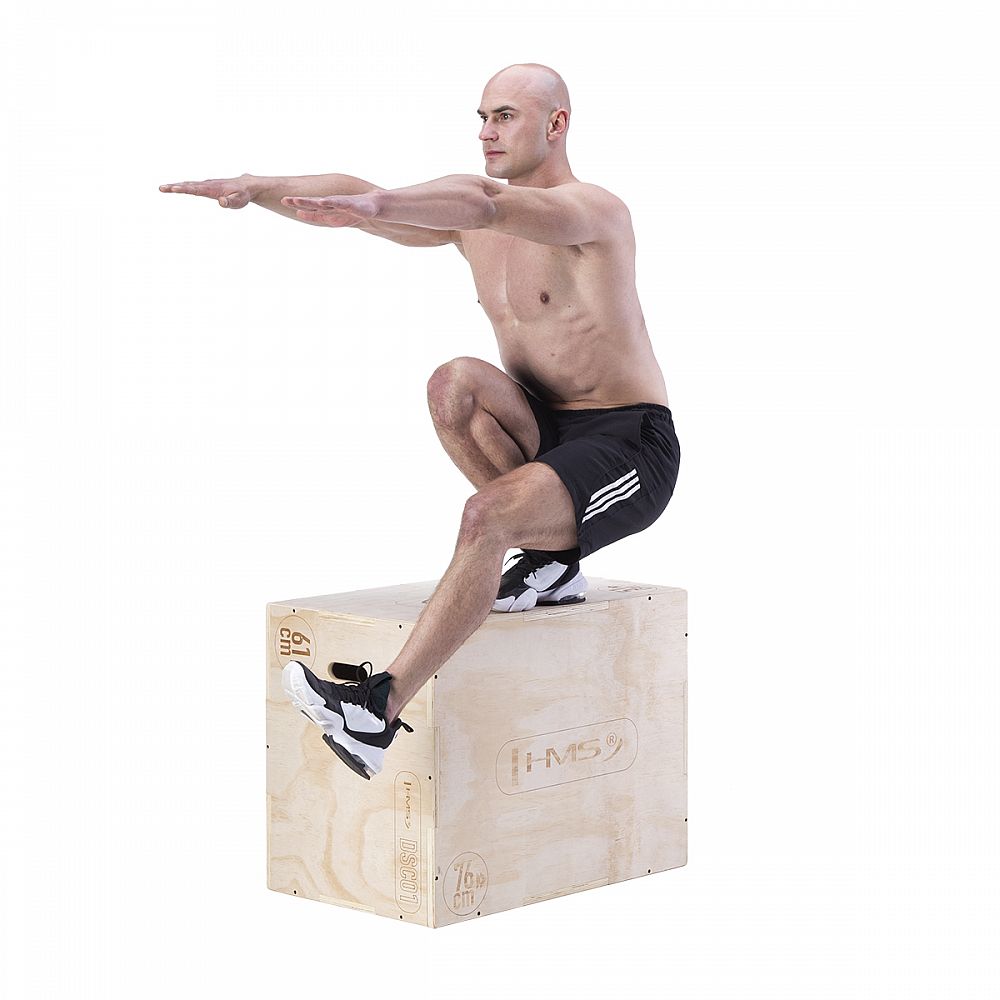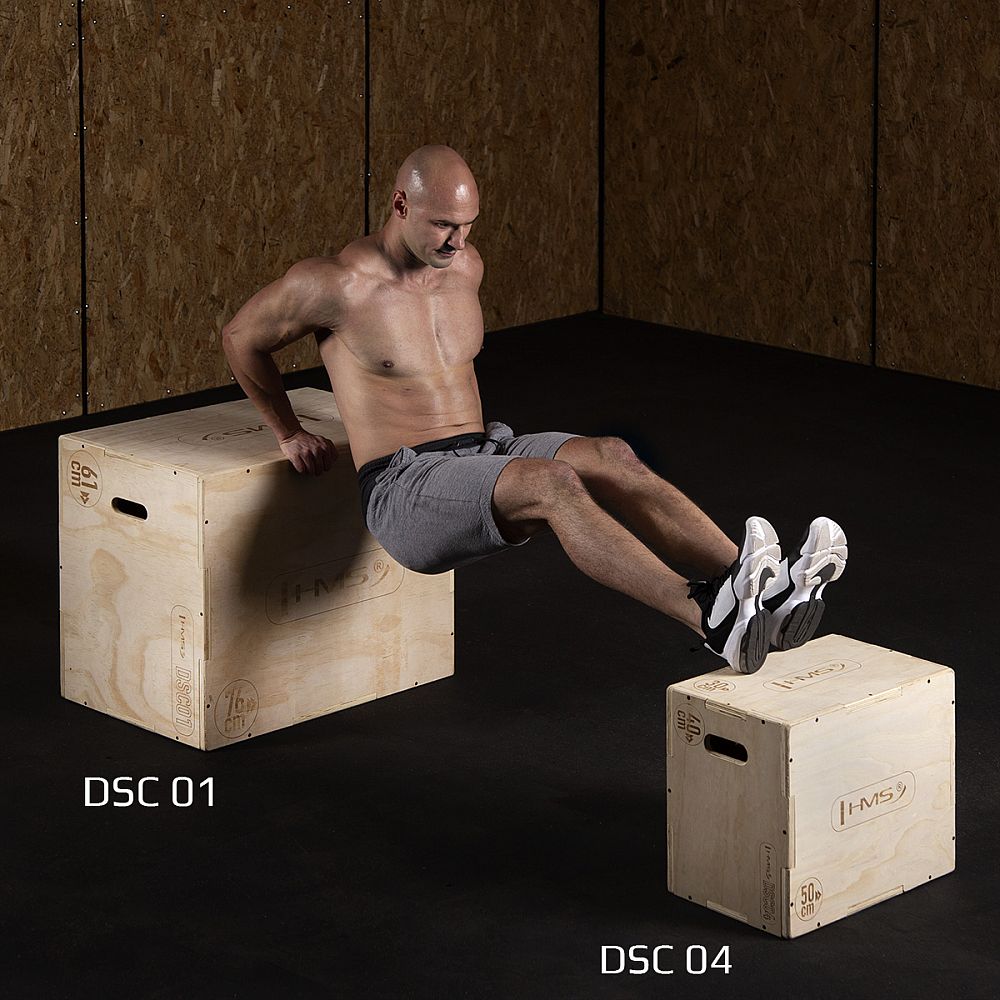 Plyometrické box HMS DSC01 je debna určená pre kondičný tréning. Box je neoddeliteľnou súčasťou každého crossfitového centra, pomôckou profesionálnych športovcov alebo aj atlétov. Vyrobený je z 18 mm preglejky a má klasické rozmery 76,2 x 60,96 x 50,8 cm (30 x 24 x 20 palcov).