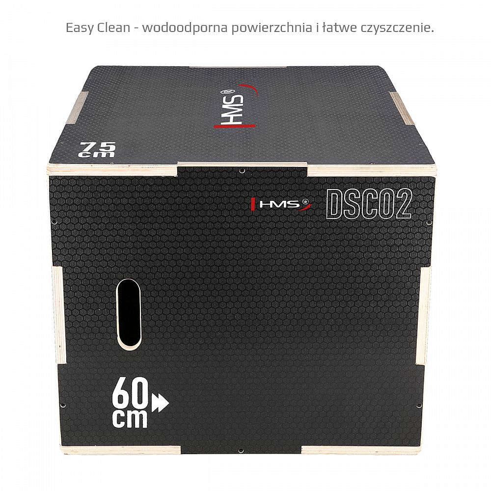 Plyometrické box HMS DSC02 je debna určená pre kondičný tréning. Box je neoddeliteľnou súčasťou každého crossfitového centra, pomôckou profesionálnych športovcov alebo aj atlétov. Vyrobený je z 18 mm preglejky a má klasické rozmery 75 x 60 x 50 cm (30 x 24 x 20 palcov) ..