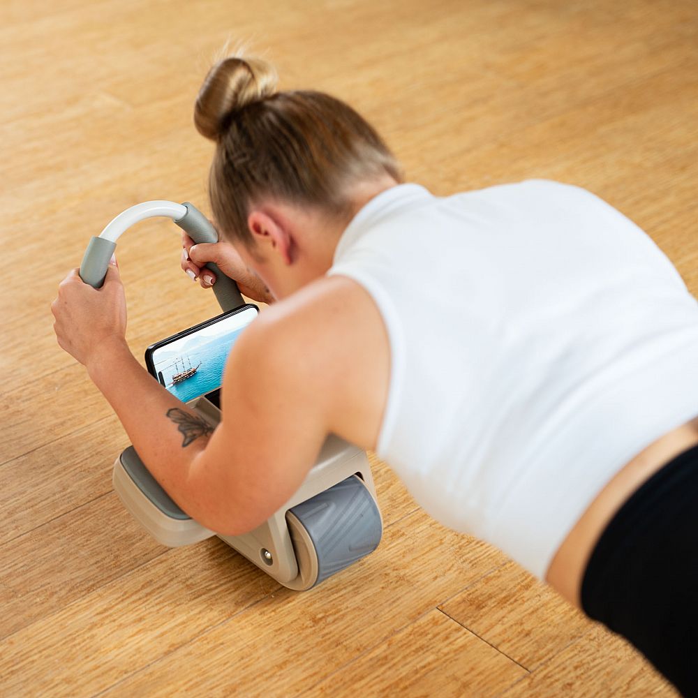 KA08 je viac ako len posilňovací valec. LCD displej na zariadení umožňuje sledovať počet opakovaní, rýchlosť, spálené kalórie a dobu cvičenia, čo uľahčuje sledovanie vášho pokroku a nastavenie tréningových cieľov. Valec má tiež praktický držiak na telefón, takže môžete pri cvičení využívať tréningové aplikácie alebo sledovať obľúbené videá.