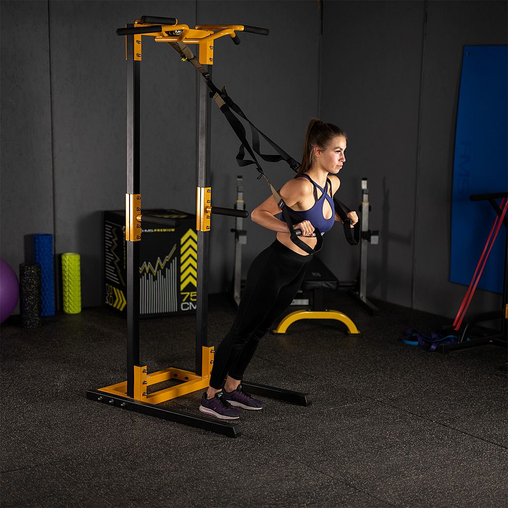 Model HMS TX09 je vyrobený z mimoriadne odolných materiálov, vďaka ktorým si jeho používatelia môžu byť istí svojou bezpečnosťou a pohodlím. Celá sada váži menej ako kilogram a zmestí sa do malej tašky, ktorá je súčasťou sady. Užívateľsky prívetivý montážny systém vám umožní slobodne si vybrať miesto, kde budete trénovať, čo vám dodá pocit slobody a zvýši vašu motiváciu na cvičenie.