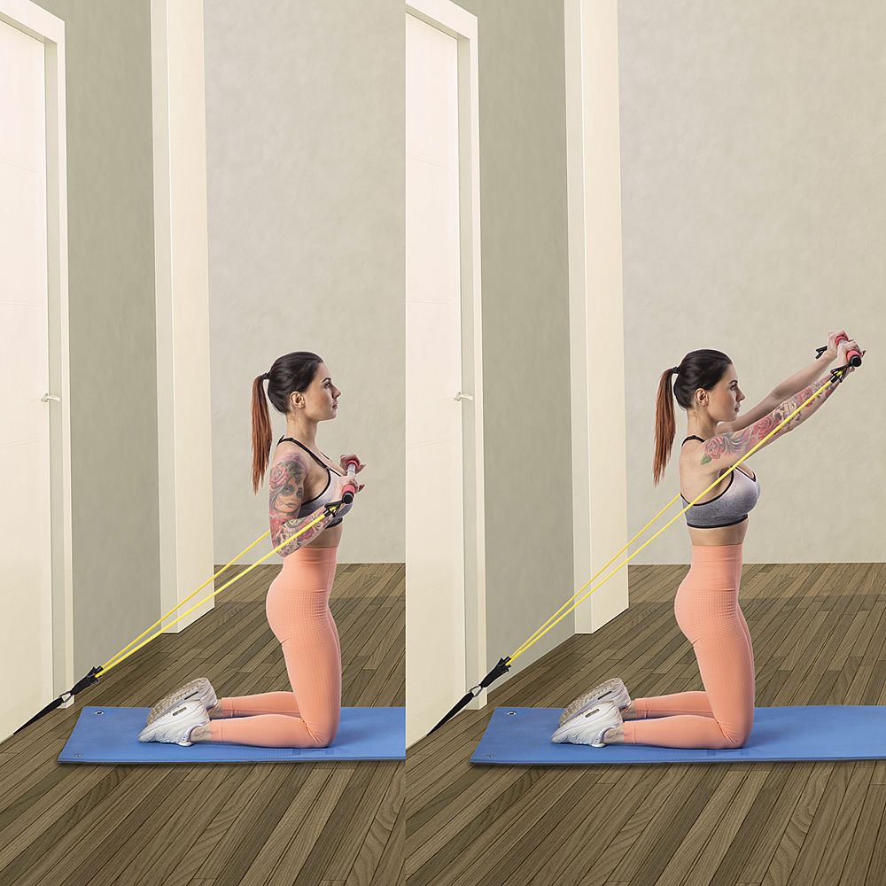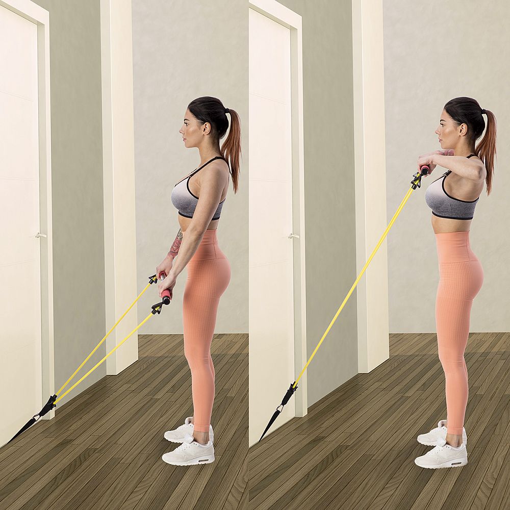 Ako príklad uvadíme cvik, kedy sa na tyč postavíte a expadnérov priťahujete smerom k telu. Prípadne si rukoväte expandérov nasadíme na chodidal a priťahujeme tyč.