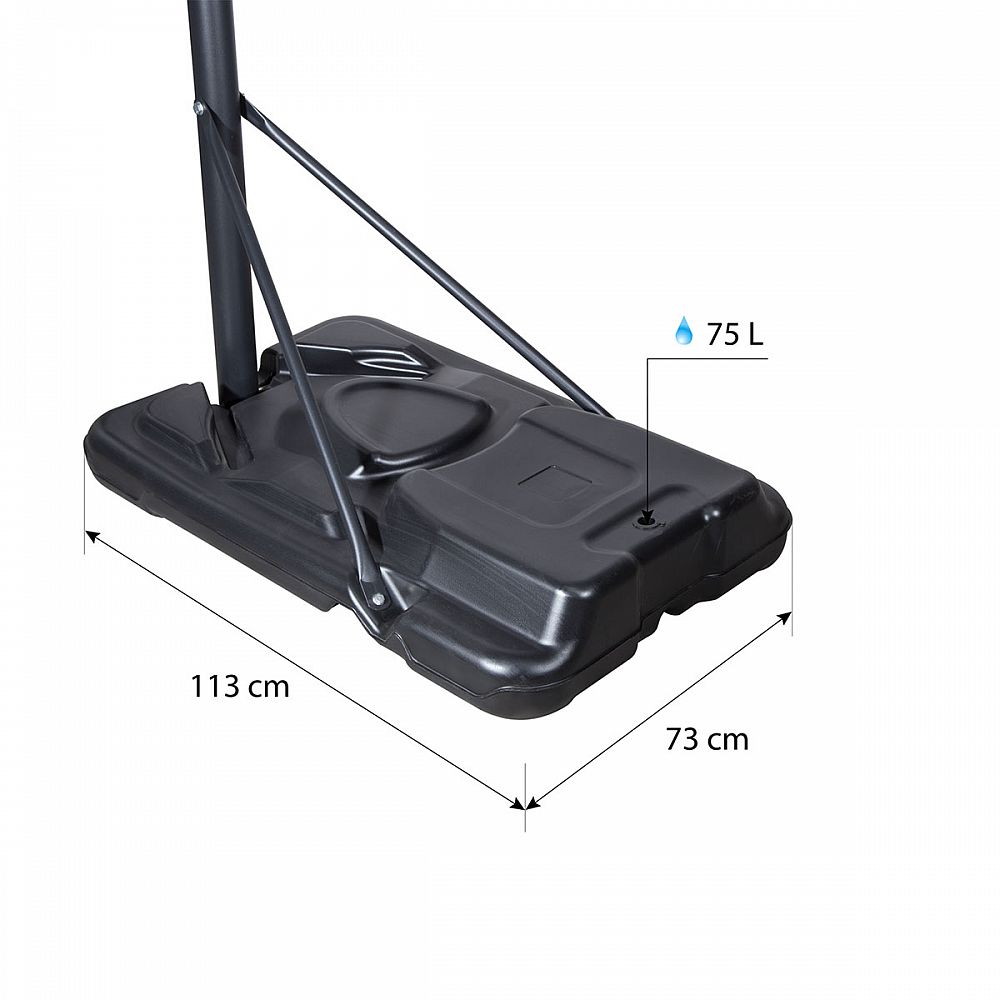Vďaka možnosti nastavenia výšky sa kôš dokonale prispôsobí vašim potrebám. Či už ste začiatočník, alebo skúsený šampión, náš kôš vám poskytne dokonalé nastavenie pre maximálne využitie vášho potenciálu. Zmena výšky sa vykonáva uchopením madla, stlačením tlačidla a posuvom madla po regulačnej tyči, ktorá je ciachovaná, aby ste okamžite vedeli, v akej výške sa aktuálne nachádza obruč. Výšku obruče je možné nastaviť do 5-tich úrovní v rozsahu od 2,45 do 3,05 metra.