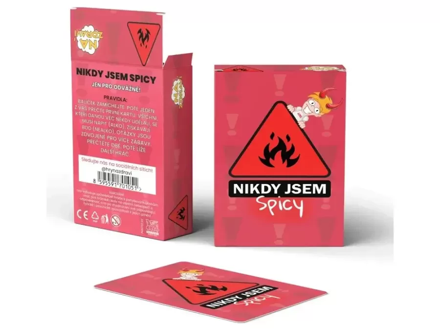 Připrav se na hru, která strhne zábrany a odhalí i ty nejpikantnější zážitky! Nikdy Jsem SPICY přináší 110 odvážných “Nikdy jsem” otázek, které prověří, co se v tobě (a tvých kamarádech) opravdu skrývá. Tahle hra není pro stydlivky – smích, rudé tváře a šokované pohledy zaručeny. Jak se hraje:Vezmeš si kartu a přečteš “Nikdy jsem…” Pokud jsi danou věc někdy zažil/a, piješ nebo získáváš bod. Pokud ne – zůstáváš v klidu a sleduješ ostatní, jak se přiznávají k věcem, které by jinak radši nechali pod pokličkou. Proč si ji zamiluješ: 110 odvážných otázek, které jinde nenajdeš. Malá krabička, ale velká jízda. Alkoholová i nealko verze. Skvělá na večírky, rozlučky i párové hraní. Vyrobeno v Česku. Technické info: Doporučený věk: 15+ Počet karet: 55 Počet otázek: 110 Hrací doba: 2+ hodiny Počet hráčů: 2–15