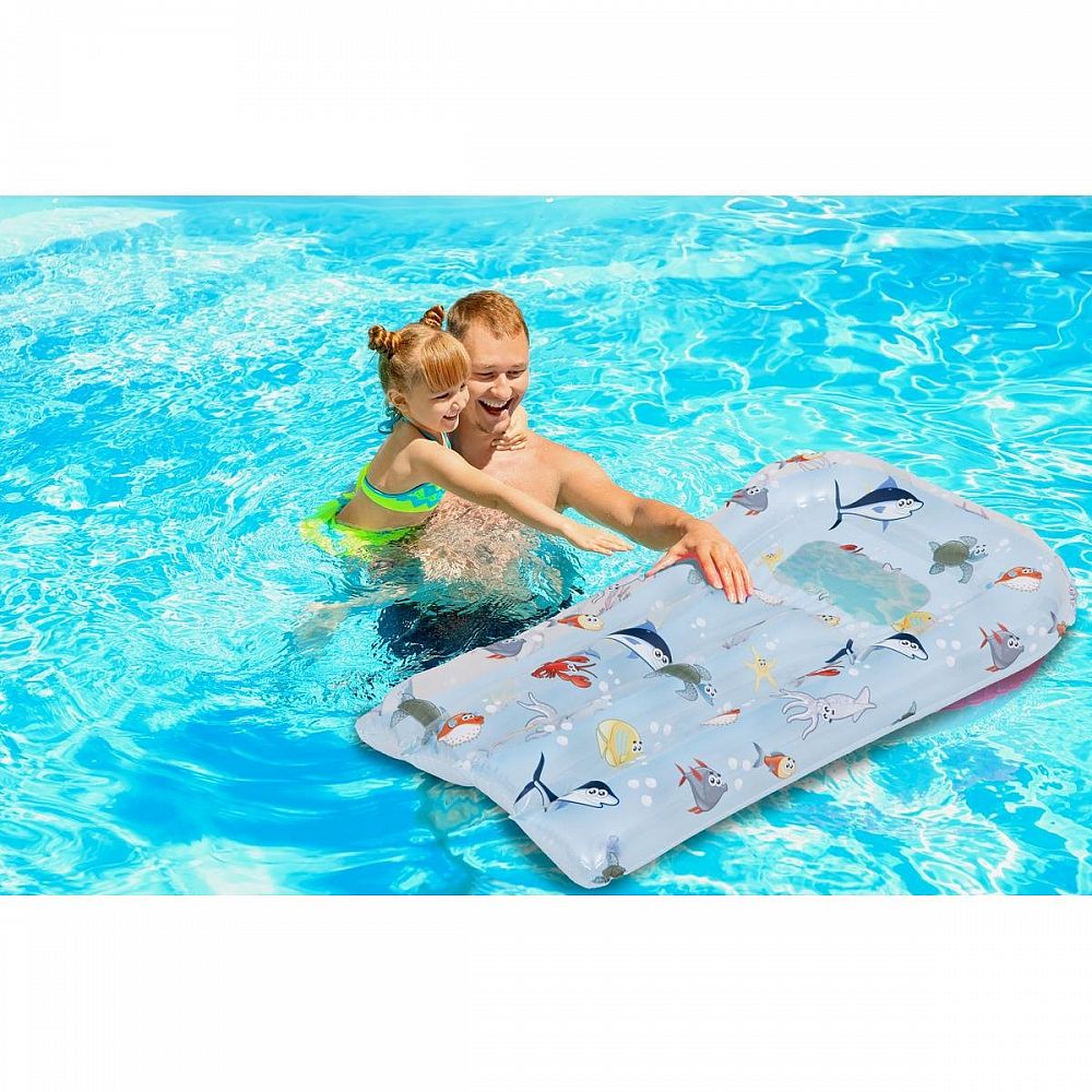 Ľahká a farebná nafukovacia plavecká doska SUN CLUB s rozmermi 72 x 47 cm je ideálna k bazénu, na pláž alebo na záhradu.