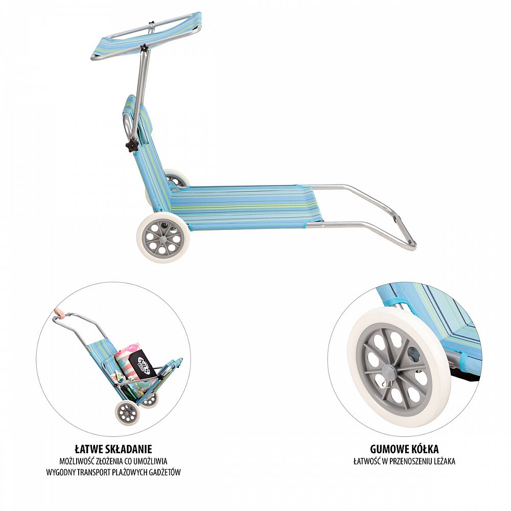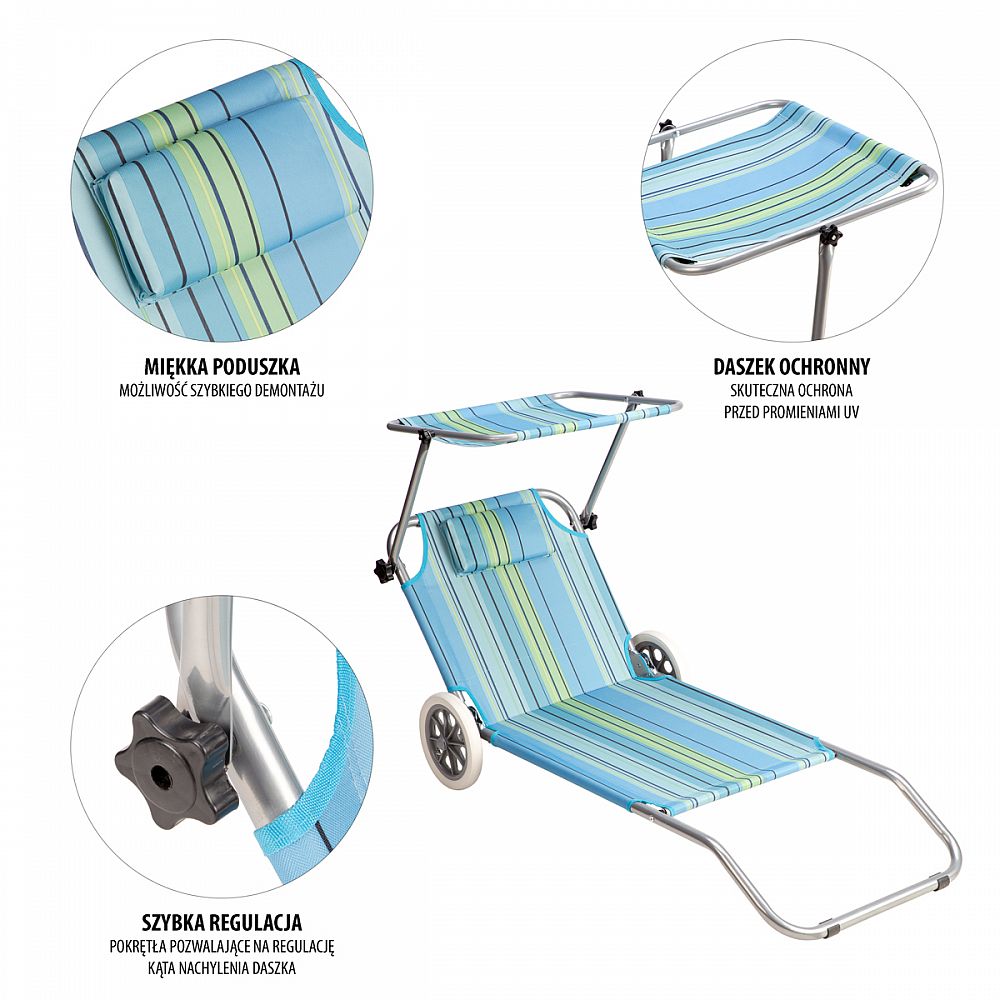 Je to ideálny spoločník na cesty na pláž, ale samozrejme sa bude hodiť aj na záhradu alebo na kempovanie. Jedná sa o univerzálne lehátko, ktoré je možné používať za všetkých podmienok av každom teréne. Jednou z mnohých výhod modelu NC3330 sú jeho kolieska. Kolieska vám nielen pomôžu lehátko ľahko umiestniť na vhodné miesto. Konštrukcia lehátka umožňuje vytvoriť z neho praktický vozík. Keď idete na pláž, nemusíte tak nosiť vybavenie v rukách. Stačí si na lehátko položiť veci a vďaka kolieskam sa pohodlne a bez námahy dostanete na požadované miesto. Medzi mnohými výhodami modelu NC3330 je potrebné spomenúť aj tienidlo. Bude vám chrániť tvár pred slnkom a umožní vám čítať si knihu alebo sa kochať výhľadom na more. Kolesá aj tienidlo sú odnímateľné. Pohodlie zvyšuje vankúšik, ktorý je súčasťou lehátka. Lehátko NC3330 je možné umiestniť do polohy v ľahu, čo vám umožní opaľovať sa na chrbte alebo na bruchu. Táto poloha je atraktívna najmä pre tých, ktorí neradi ležia napríklad priamo na piesku. Môžete tiež meniť uhol operadla, a to až do pravého uhla, čím získate polohu v sede..