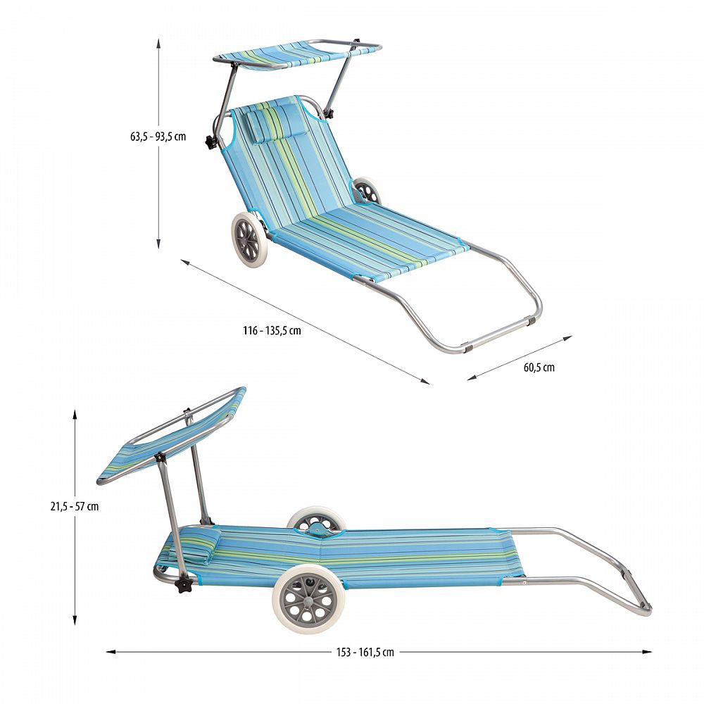 - Rozmery v polohe lehátka (bez tienidla): 153 x 61 x 22 cm