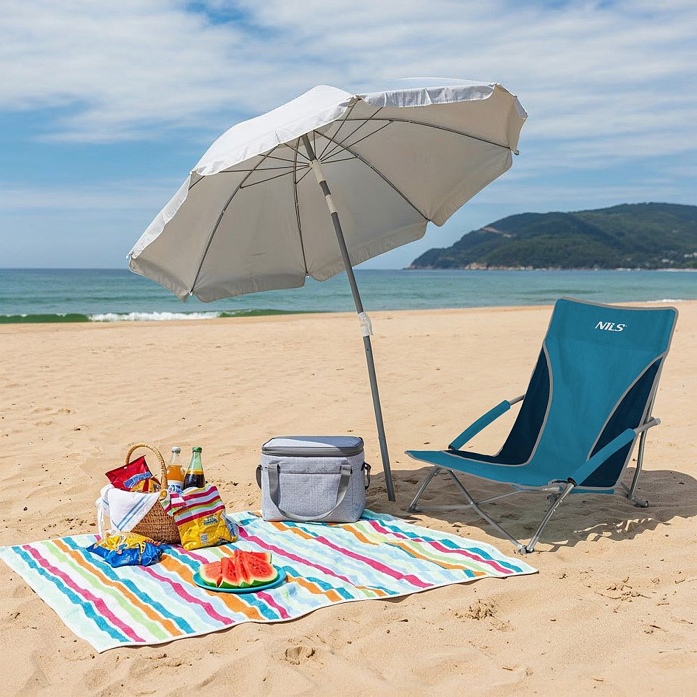 Skladacie, plážové kreslo NILS Camp NC3035 je ideálne k vode, k bazénu alebo napríklad na dovolenku pod stan.