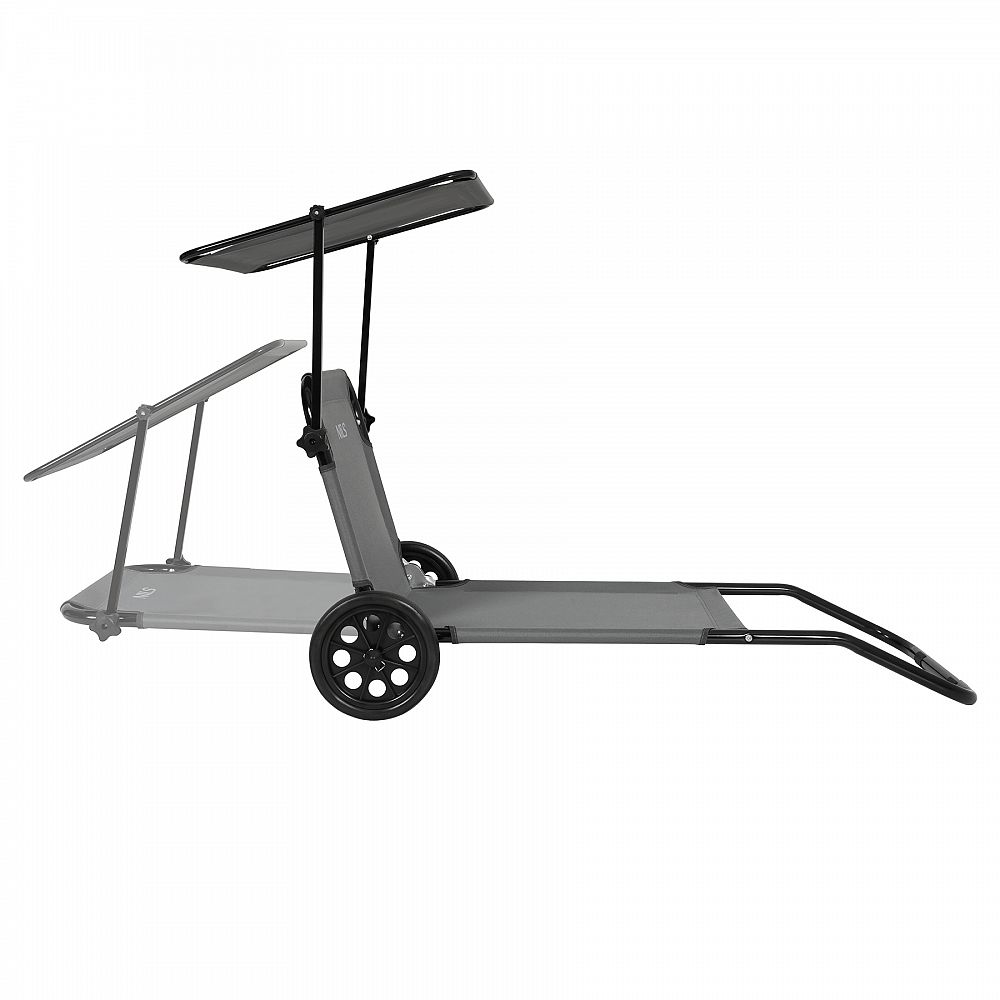 Na zadnej časti konštrukcie sú umiestnené dve transportné kolieska, ktoré výrazne uľahčujú presun lehátka. Stačí ľahko zdvihnúť prednú časť a viesť ho ako kufor – bez nutnosti zdvíhania alebo demontáže. To je obzvlášť užitočné na pláži, v kempe alebo keď treba rýchlo presunúť lehátko na slnečnejšie či zatienené miesto.