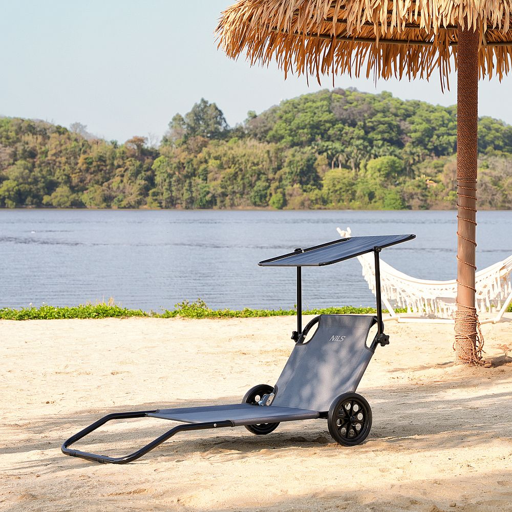 Popis: Plážové lehátko s tienidlom NILS Camp NC3307 sivé