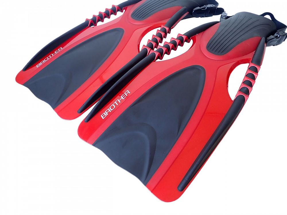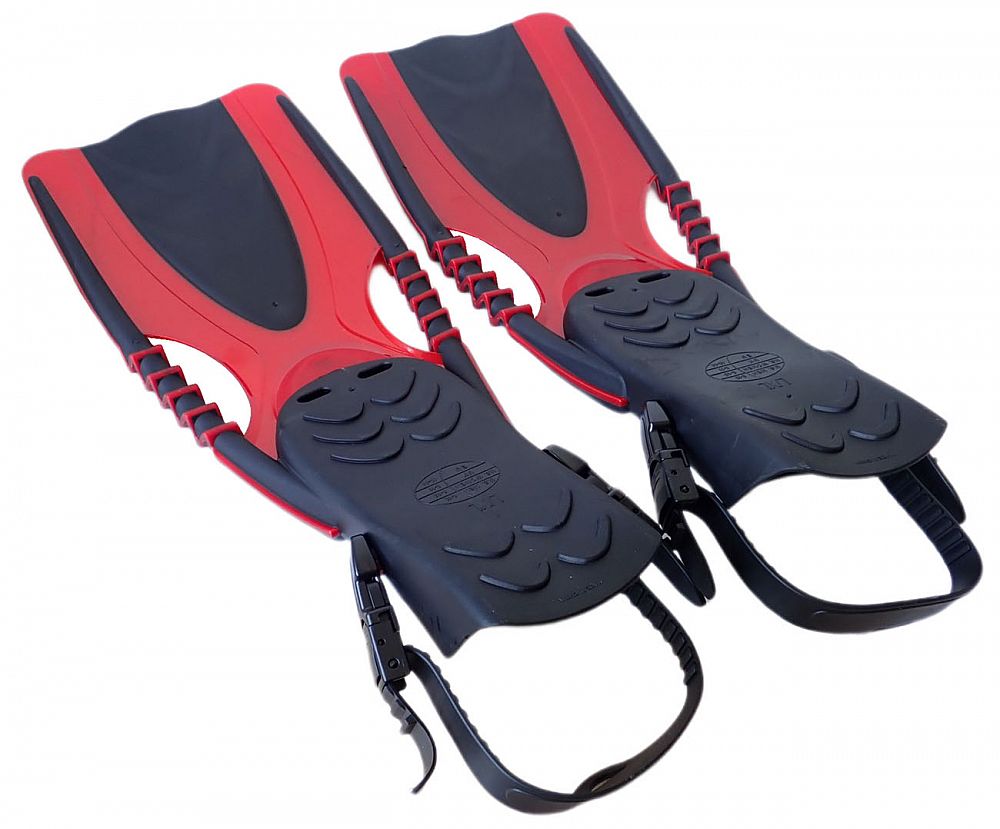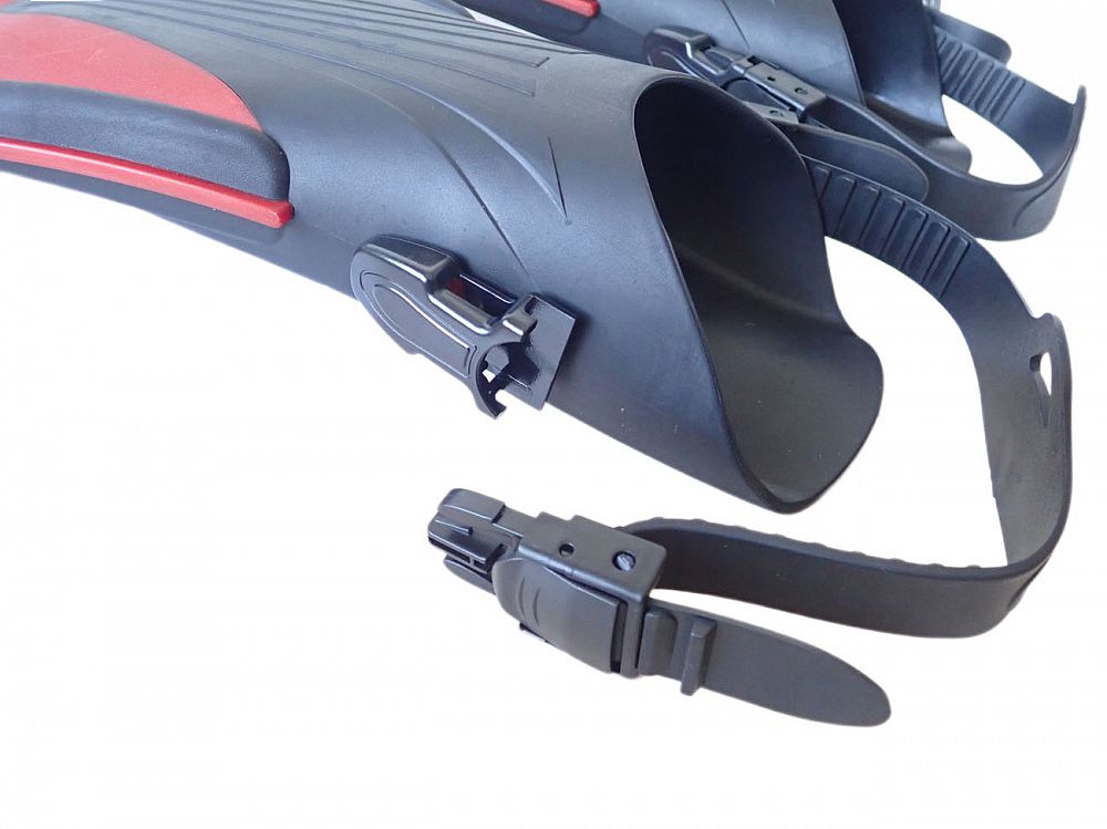- gumový trojuholník, pružné pásiky na bokoch a prieduchy v plutvách zaisťujú dokonalé prúdenie vody a účinný záber pri potápaní
