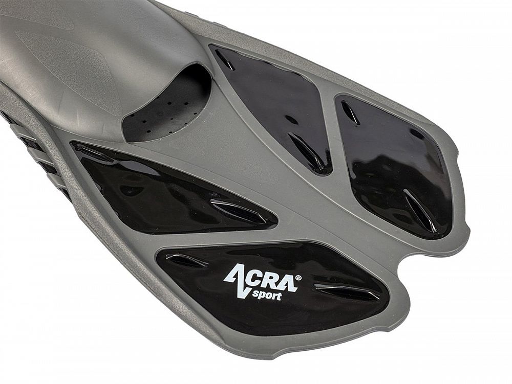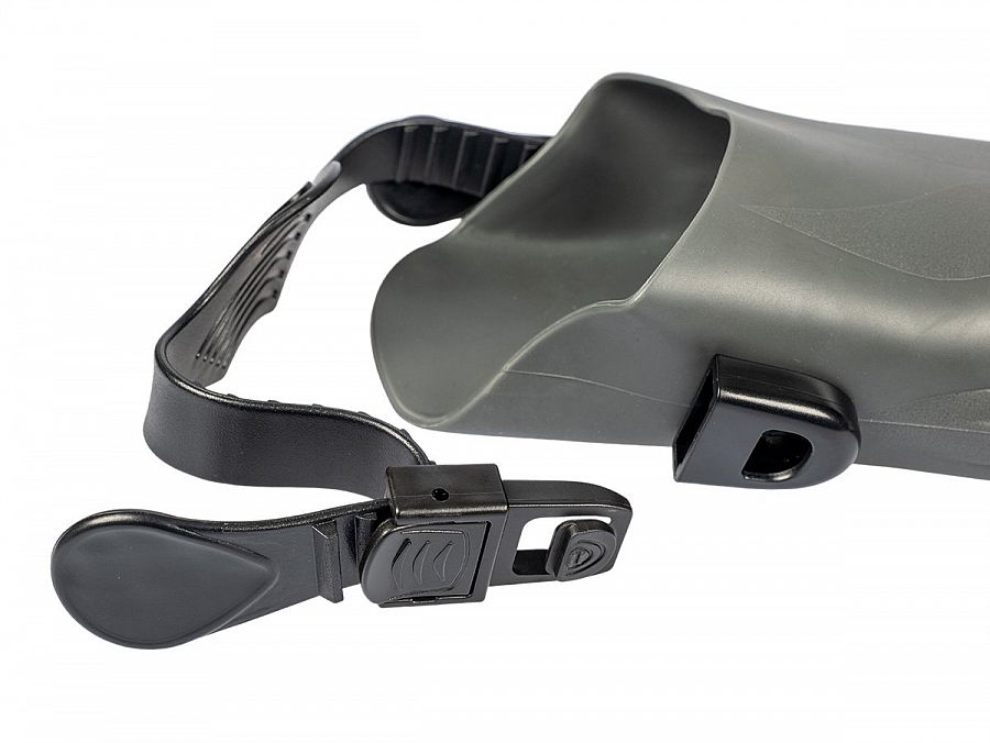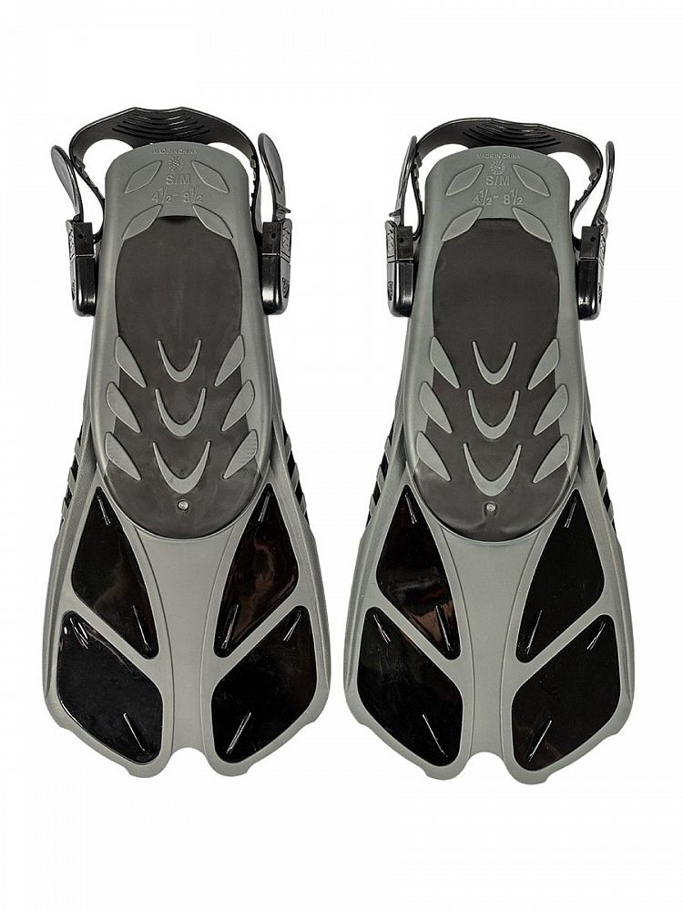 - Odolná a protišmyková podrážka: Podrážka plutiev je pevná a vybavená veľkými protišmykovými vložkami. To zaisťuje nielen úplnú ochranu chodidla, ale aj vynikajúci prenos sily medzi nohou a plutiev pre efektívny záber.