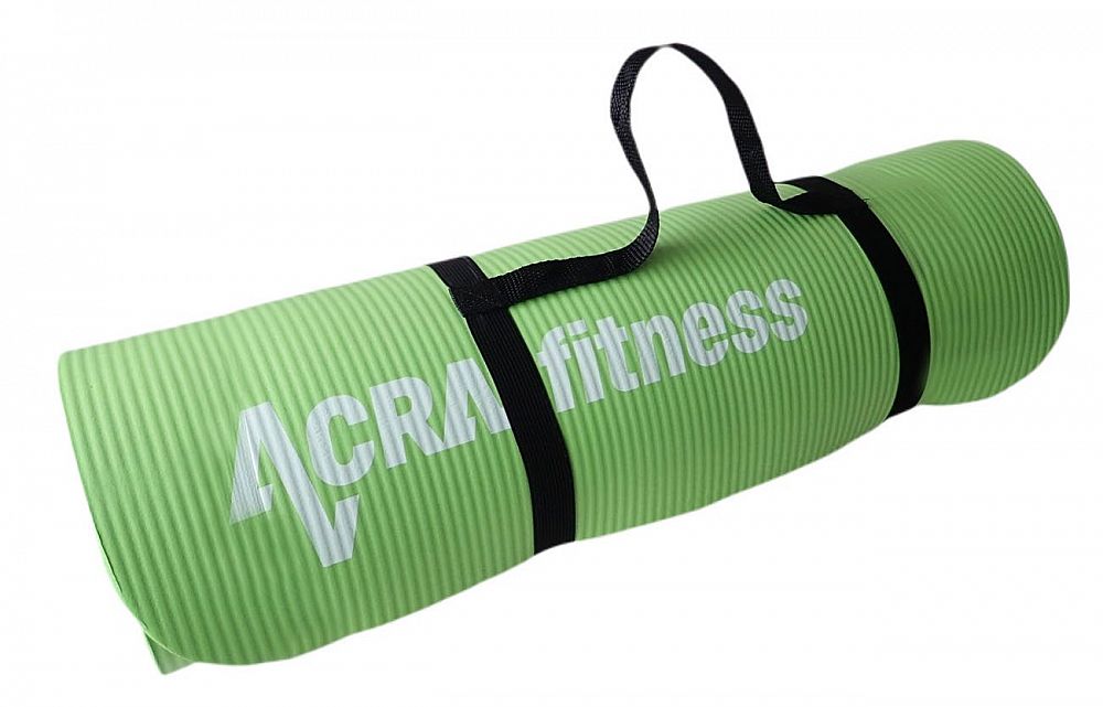 NBR Yoga Mat - mäkká komfortná podložka na cvičenie v zelenej farbe je vyrobená z kvalitnej kaučukovej hmoty (NBR) potiahnutej protišmykovým povrchom na oboch stranách. To zaručuje komfortné cvičenie pri zaručení zdravotnej nezávadnosti. Kvalitná podložka na cvičenie NBR Yoga Mat (NBR je technická značka zušľachteného syntetického kaučuku, ktorý nevyvoláva žiadne alergické reakcie pri styku s pokožkou) má širokú možnosť použitia. Podložka sa používa na rôzne fitnessové a iné cvičenia. Ide o mäkký materiál veľmi príjemný na dotyk, ale zároveň má podložka aj protišmykové vlastnosti z oboch strán, vrchná strana má aj štruktúrovaný povrch, aby ešte viac uľahčovala a spríjemňovala cvičenie. NBR Yoga Mat sa vyznačuje aj ochrannou funkciou, kedy mäkkou pružnou vrstvou materiálu zamedzuje možnosti drobných úrazov vrátane otlakov, odrenín. Preto sú podložky vhodné aj na cvičenie, kde je potrebné tlmenie nárazov. Podložka sa odporúča na fitnessové cvičenia všetkého druhu, na jogu a naťahovanie a tiež ako fyzioterapeutická pomôcka. Podložka je opatrená upevňovacími popruhmi pre jednoduchú manipuláciu. Ďalšie možné použitie podložky je na stanovanie ako dokonalejšia náhrada klasických penových turistických karimatiek. NBR Yoga Mat má výborné izolačné vlastnosti, vďaka ktorým Vás ochráni pred prechladnutím.