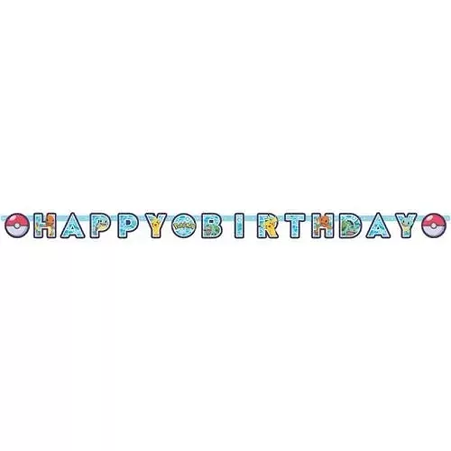 Party nápis Happy Birthday na tematickú party s Pokemony.
